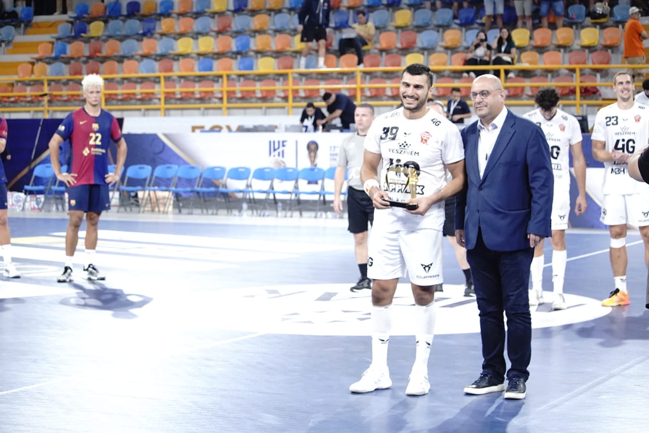 وحصد يحيى الدرع نجم فريق فيزبريم المجري ولاعب منتخب مصر، جائزة رجل المباراة على أدائه خلال المباراة أمام برشلونة.