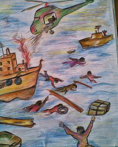 وفيما يلي نماذج من رسومات حرب أكتوبر تعكس تفاعل الطالب مع أحداث الحرب المختلفة:
