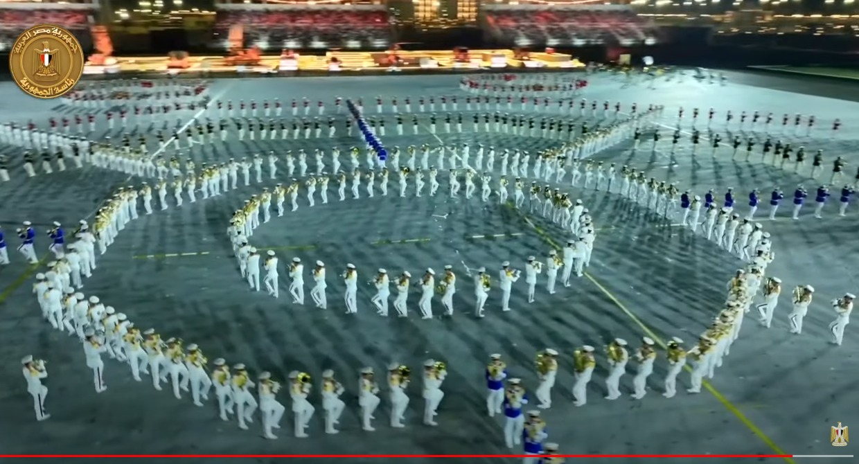 أمام الرئيس السيسي.. طلاب الكليات العسكرية يشكلون بأجسادهم الأوكتاجون