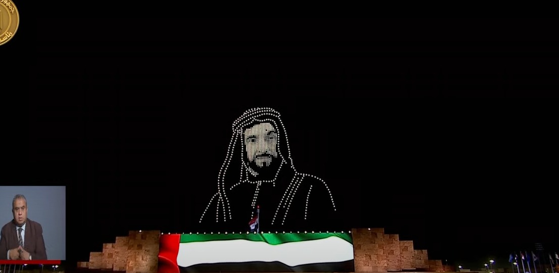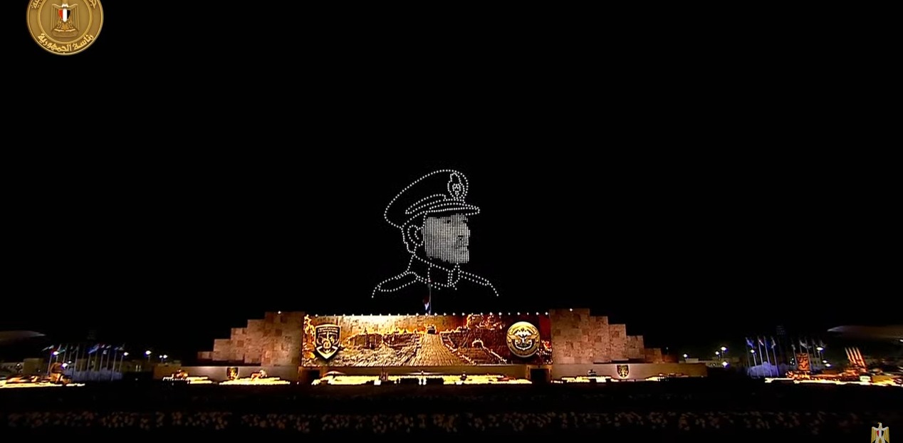 زيّنت صورة الرئيس عبد الفتاح السيسي، رئيس الجمهورية، وصورة الرئيس الراحل محمد أنور السادات، والشيخ زايد والشيخ محمد بن زايد رئيس دولة الإمارات العربية المتحدة، حفل تخريج دفعة جديدة من طلبة الأكاديمية والكليات العسكرية 2024.