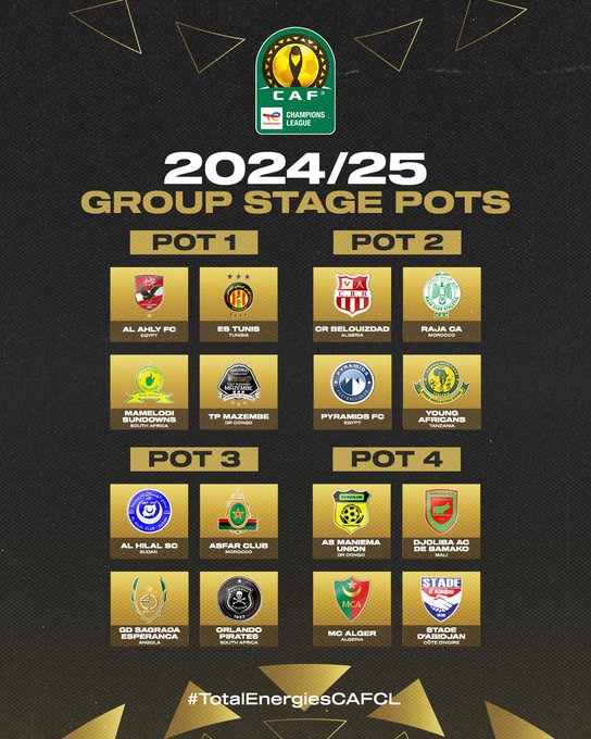 وتقام قرعة دور المجموعات لـ بطولة دوري أبطال إفريقيا 2024-2025، يوم الاثنين المقبل الموافق 7 أكتوبر 2024.