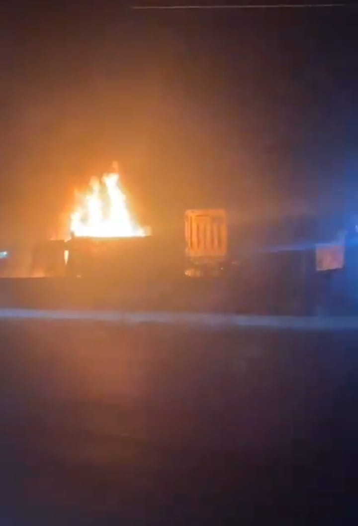 اشتعال النيران في سيارة نقل قبل مدينة الضبعة