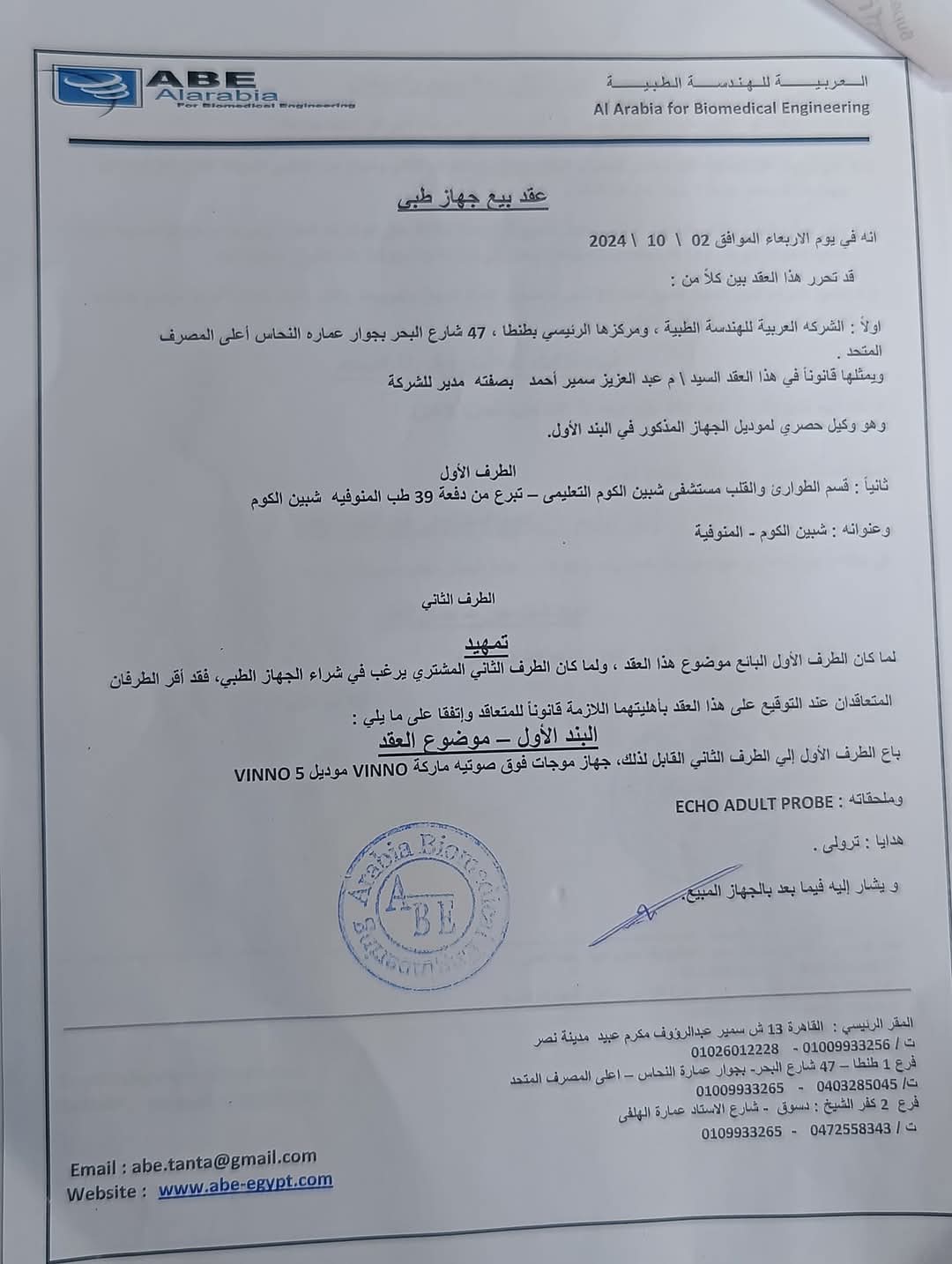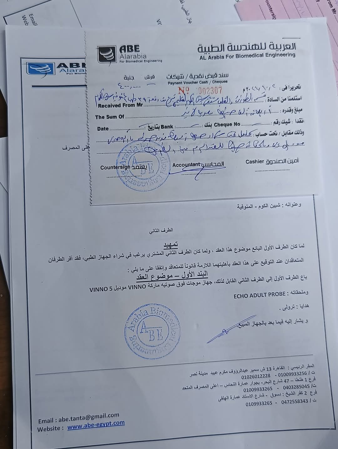 وتابع الطلاب: الحمد لله تم جمع سعر جهاز الإيكو والتسليم ووصل الجهاز مستشفى القصر التعليمي بشبين الكوم، الحمد لله دا إنجاز حقيقي وكبير في وقت بسيط بفضل ربنا وشكرا على ثقتكم وعلى مجهودكم في نشر الموضوع وتبرعاتكم ربنا يخلفها عليكم أضعاف بالخير يارب، شكرا لدكاترة مستشفى القصر على تعاونهم معانا واهتمامهم وحقيقي من أفضل الناس اللي اتعاملت معاهم طول فترة جمع التبرعات، وكمان بيبلغوكم شكرهم وامتنانهم للدفعة ولكل متبرعين البيدج وربنا يجعله في ميزان حسناتكم يارب وشكرا للشركة العربية الهندسية لتعاونهم معانا من الأول ولما عرفوا إن دا جهاز تبرعات وعملوا لنا خصم 75 ألف جنيه.