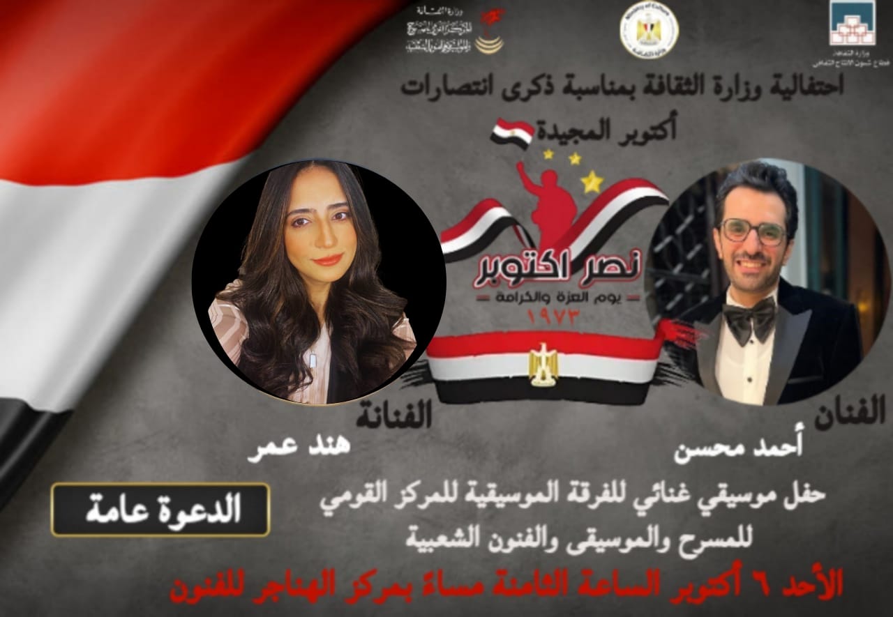 في إطار توجيهات الأستاذ الدكتور أحمد فؤاد هنو وزير الثقافة، لإحياء الذكريات الوطنية العظيمة، وتحت إشراف رئيس قطاع شئون الإنتاج الثقافي المخرج الكبير خالد جلال، يقيم المركز القومي للمسرح والموسيقى والفنون الشعبية بقيادة الفنان إيهاب فهمي؛ بمناسبة ذكرى انتصارات أكتوبر المجيدة، حفلا موسيقيًا لفرقة المركز الموسيقية بإشراف الفنانة رانيا عمر، وقيادة المايسترو أحمد ماهر، وذلك في تمام الساعة الثامنة مساء بعد غد الأحد 6 أكتوبر 2024، وتقام الاحتفالية في مسرح الهناجر.