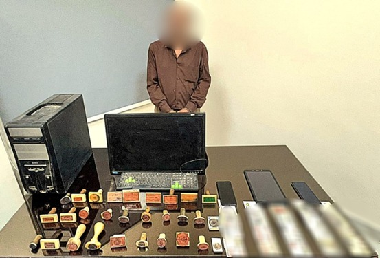 وعقب تقنين الإجراءات بالتنسيق مع قطاع الأمن العام أمكن ضبطه وأقر باشتراكه مع 3 أشخاص لإثنين منهم معلومات جنائية، في ممارسة نشاط إجرامي تخصص في تزوير الشهادات والمُحررات الرسمية أمكن ضبط المذكورين وبحوزتهم 8 هواتف محمولة، و15 خاتم شعار الجمهورية لجهات حكومية مختلفة مزورة، و7 أكلاشيهات لجهات مختلفة مزورة، و7 كارنيهات مزورة، و39 شهادة جامعية مزورة، و220 محررا لجهات مختلفة مزورو، و5 طابعات ألوان، وإسكانر، و3 أجهزة حاسب آلي، وكمية من الأدوات والخامات المستخدمة في عمليات التزوير، وأقروا بنشاطهم الإجرامي وأن جميع المضبوطات حوزتهم تُستخدم في تزوير واصطناع المحررات الرسمية.
