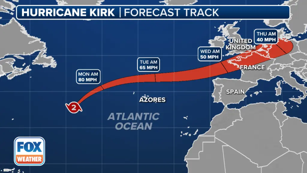 يحتمل، أن يصل الإعصار كيرك إلى المملكة المتحدة وفرنسا، وسينتج عن الإعصار أمطار غزيرة وعواصف ورياح مدمرة.