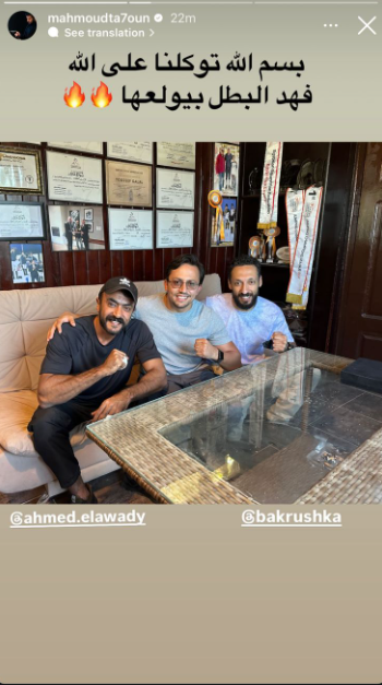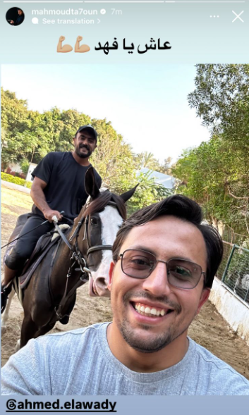 ونشر مخرج الأكشن محمود طاحون، صورة له رفقة أحمد العوضي وهو على الحصان، عبر خاصية ستورى على حسابه الشخصي بموقع إنستجرام، وكتب قائلًا: عاش يا فهد.