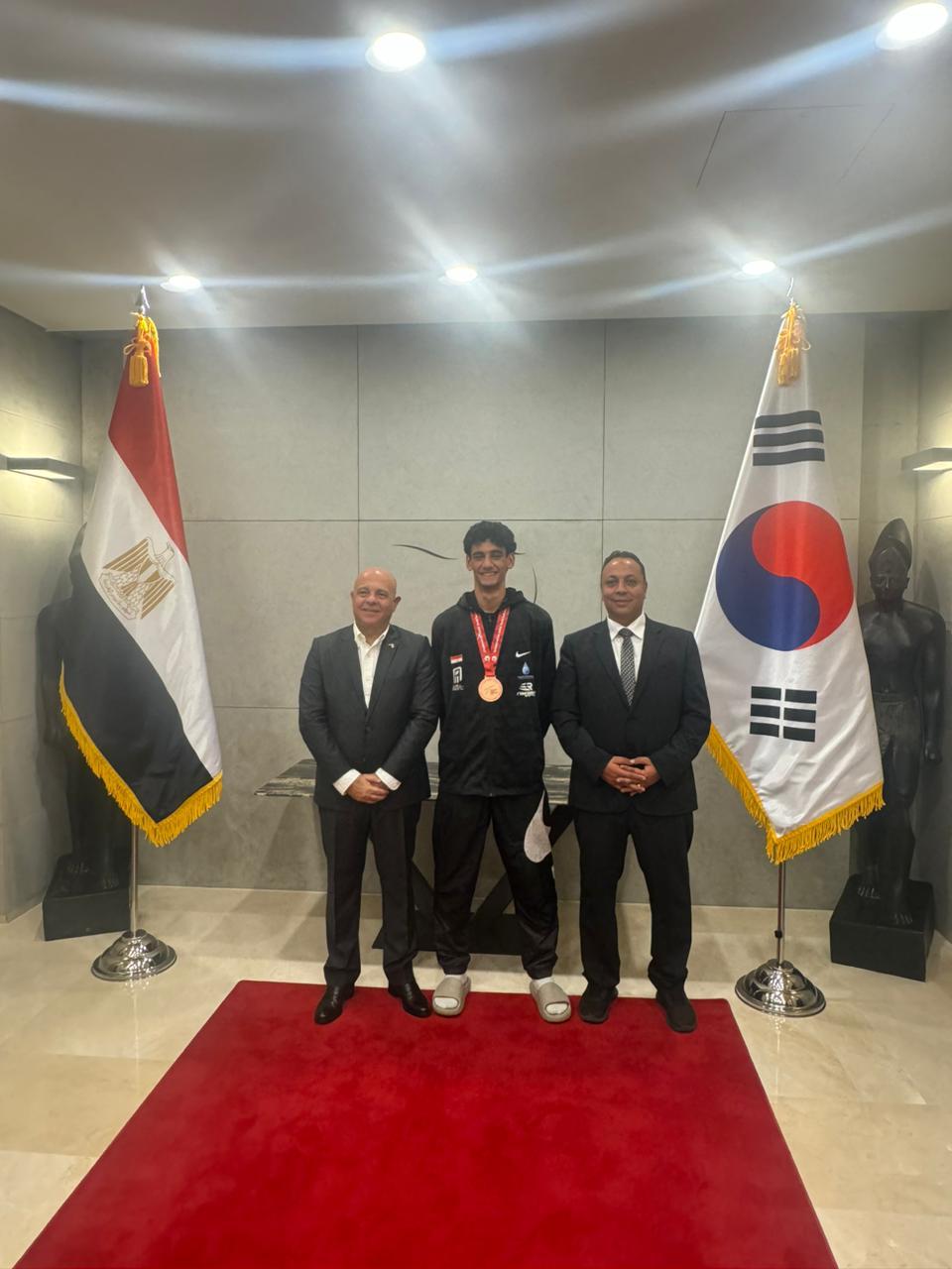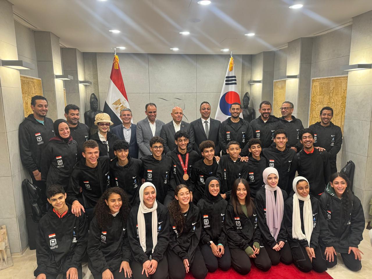 سفير مصر بكوريا الجنوبية يستقبل بعثة منتخب شباب التايكوندو بعد التألق في بطولة العالم