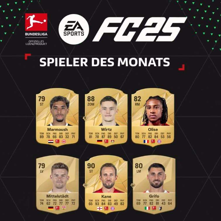 وجاء قائمة المرشحين لأفضل لاعب في الدوري الألماني عن شهر سبتمبر كالآتي: