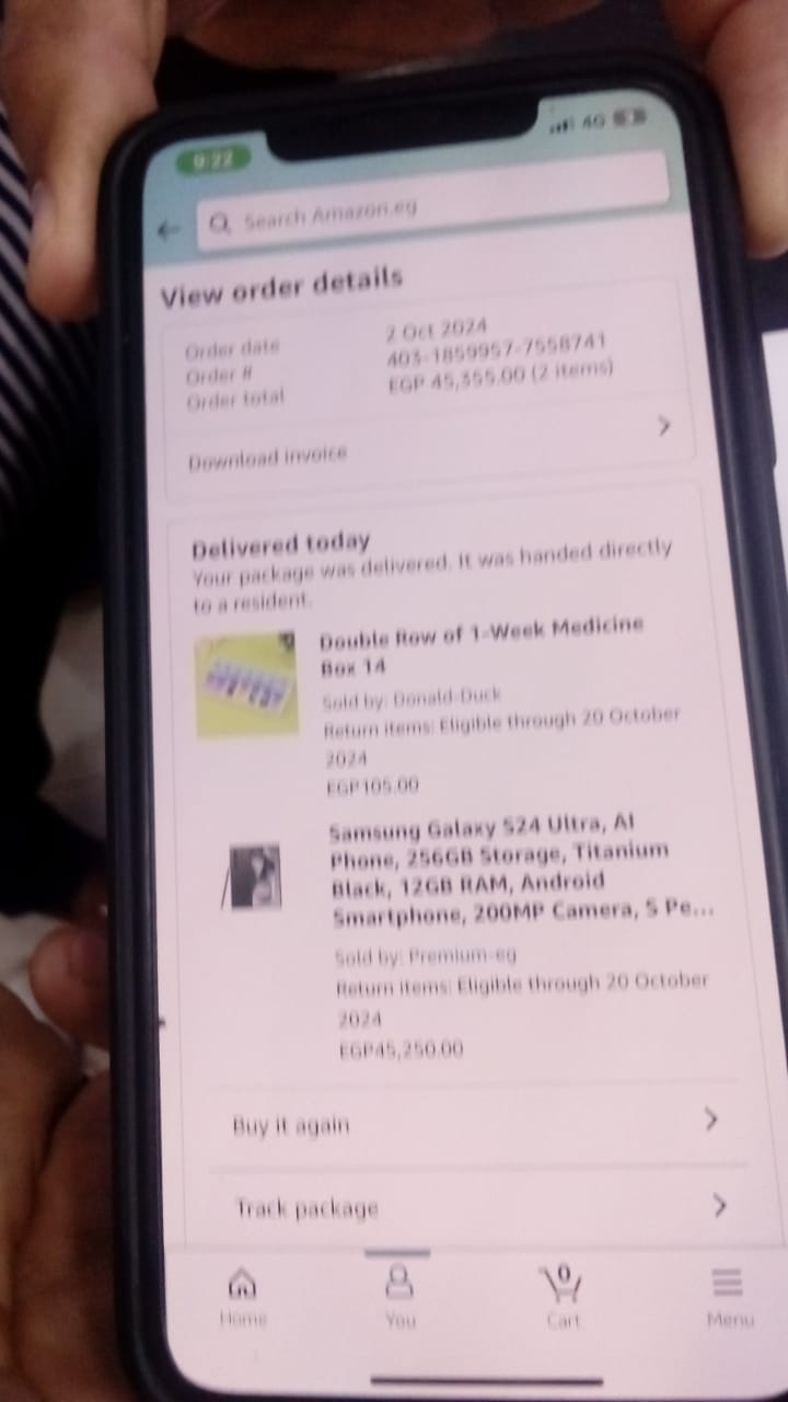 وقال العميل لـ القاهرة 24، إنه اشترى جهاز سامسونج s24 ألترا، من أمازون مصر، وقام بدفع 45.2 ألف جنيه للشركة، مقابل الحصول على الجهاز.
