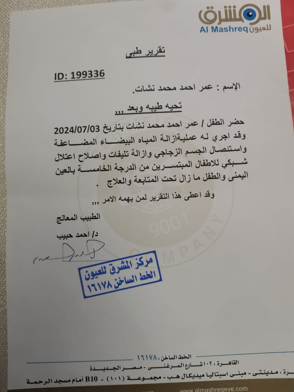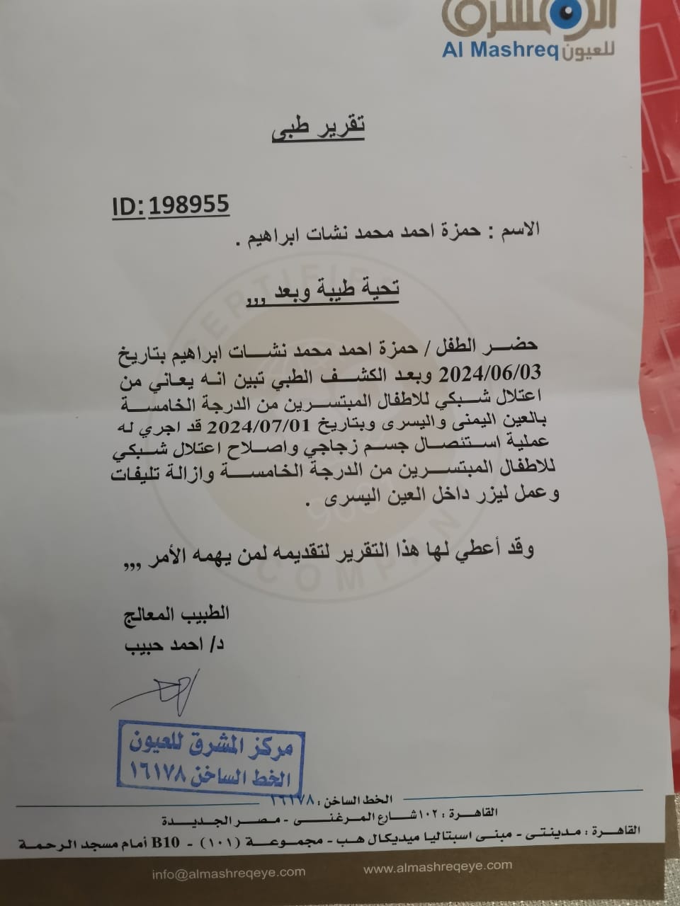 وأضاف والد الطفلين: محدش حتى بلغني بـ إن دي حاجة المفروض تحصل، رغم إن كان في مشاكل تانية في القلب والسمع وقالولي إن دي بسيطة وسكتنا، وإحنا مكناش نعرف إن في مشكلة في العين، وفضلنا كده لحد يوم 25 مايو 2024 وطفل منهم عينه ورمت فاجأة.