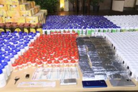 وعقب تقنين الإجراءات تم ضبطهم، وبحوزتهم أكثر من 170 ألف قرص مخدر ومؤثر، وكمية لمخدر الحشيش، وأكثر من 210 ألف قرص وعبوة منشطات، و50 كيلو جرام بودرة ترامادول، وكميات من المواد الكيميائية المستخدمة في التصنيع، والمعدات والأدوات المستخدمة في التصنيع والتعبئة والتغليف، وسيارتين، وبمواجهتهم اعترفوا بحيازتهم للمضبوطات بقصد تصنيع العقاقير المخدرة والإتجار بها، وتقدر القيمة المالية للمضبوطات بـ 70 مليون جنيه تقريبًا، وتم اتخاذ الإجراءات القانونية.
