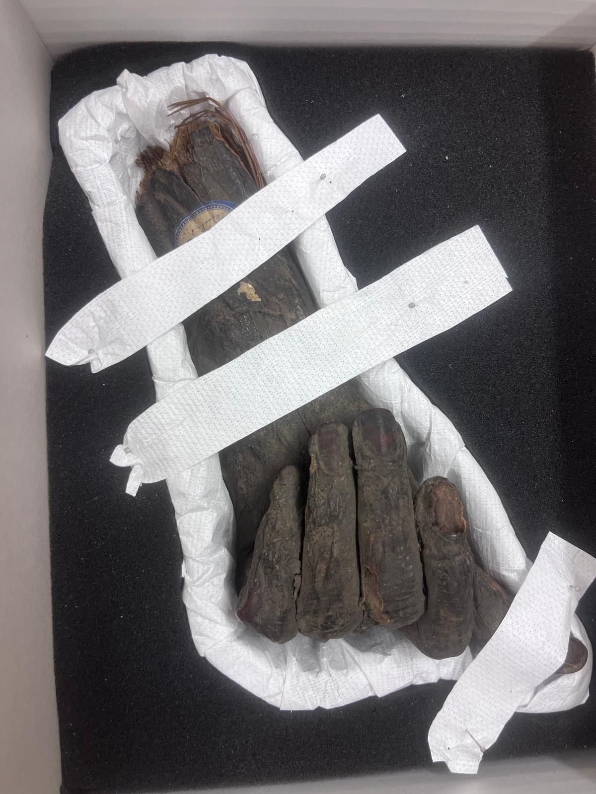 وأوضح الدكتور محمد إسماعيل خالد الأمين العام للمجلس الأعلى للآثار، أن أحداث عملية استرداد هذه القطع بدأت عندما قام متحف مدينة هامبورج بألمانيا بالتواصل مع السفارة المصرية ببرلين معلنًا عن رغبته في تسليم يد وجمجمة مومياء أثريتان وتعودان للحضارة المصرية القديمة.