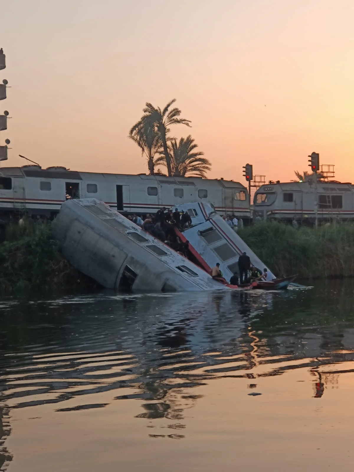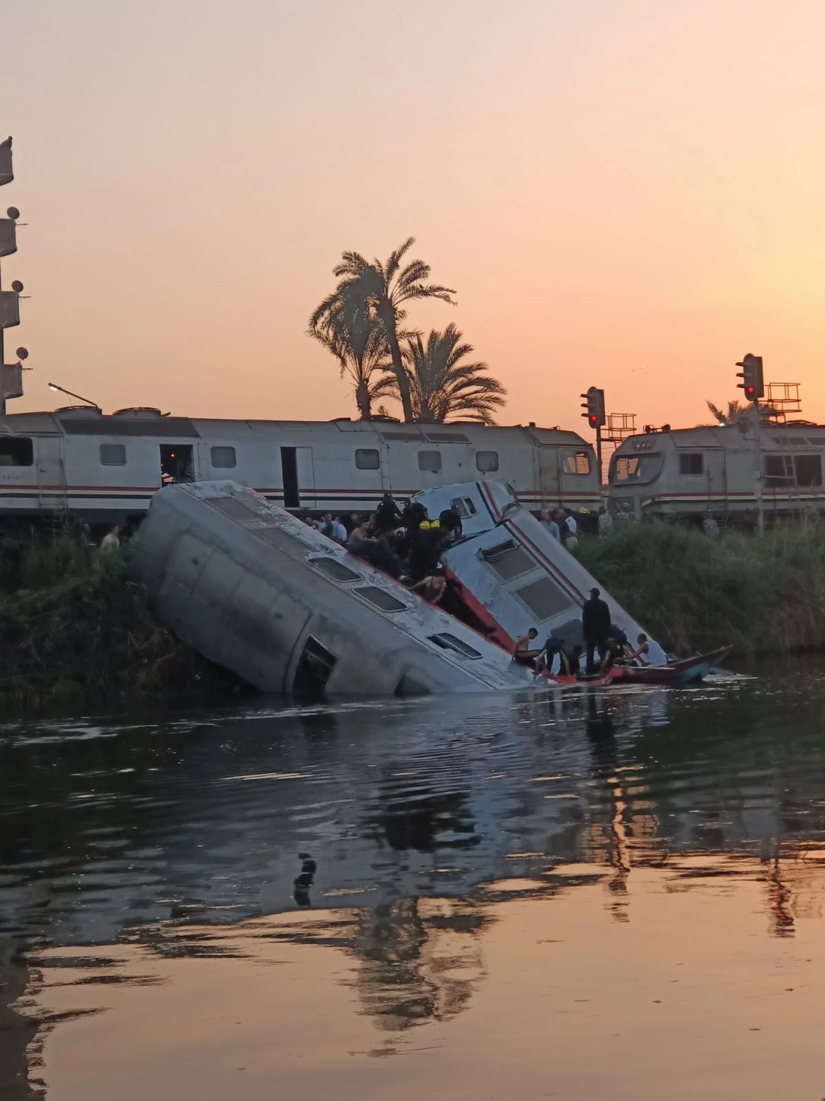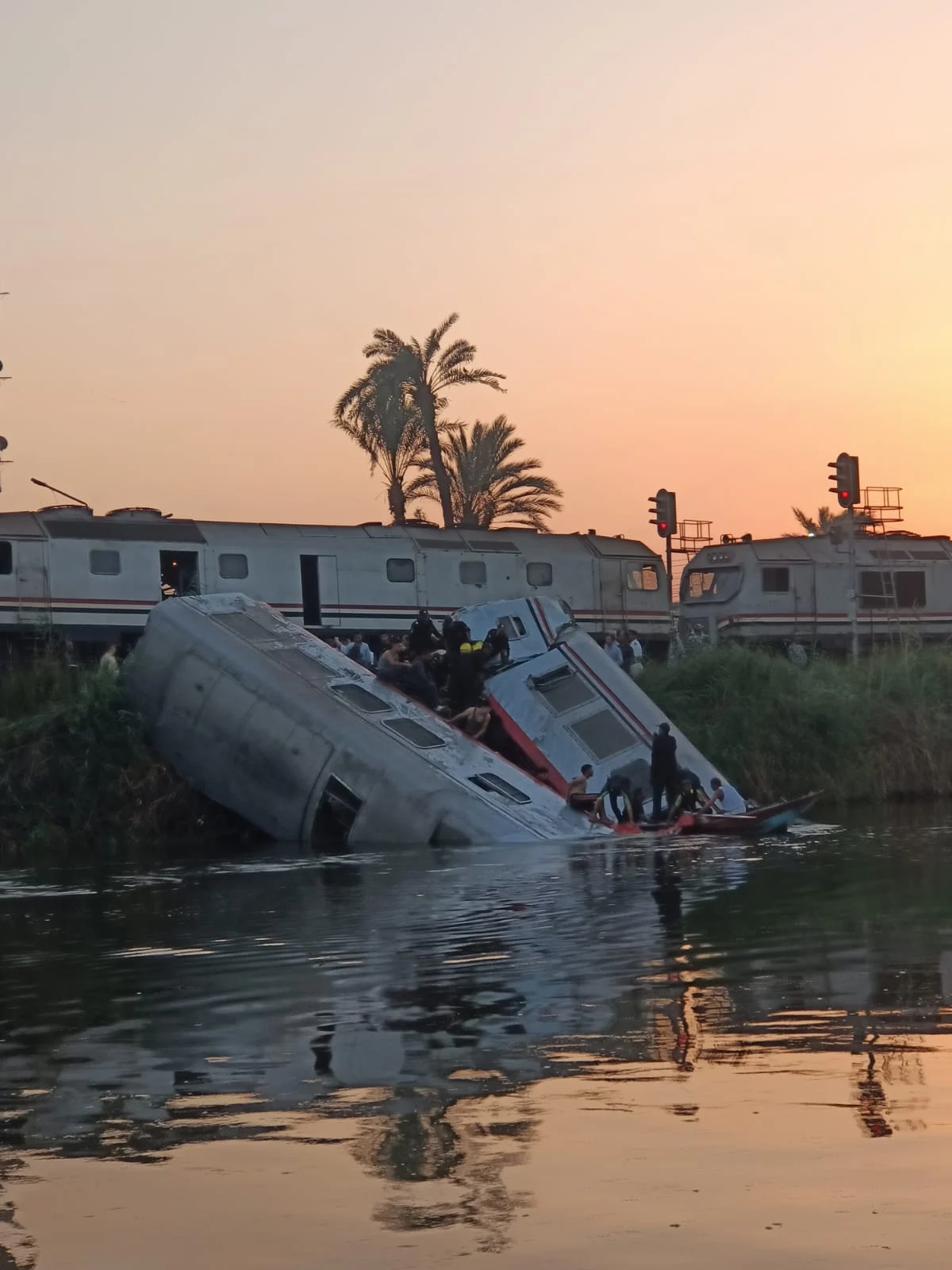 وقعوا في الترعة.. ننشر أول صور وفيديوهات من حادث قطار المنيا