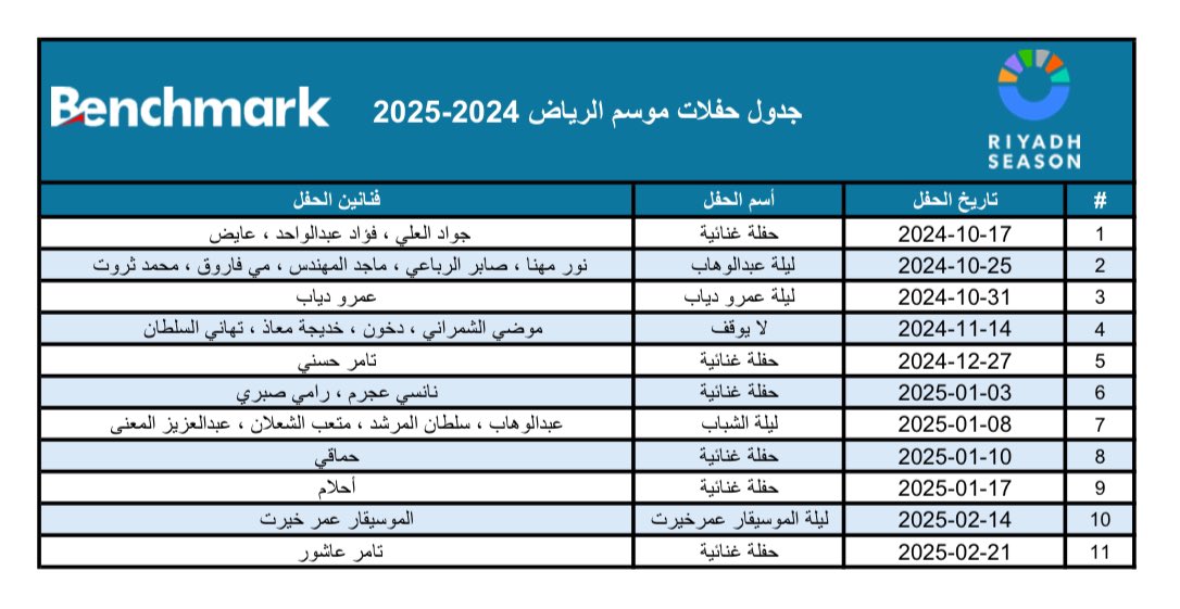 ومن جانبه أكد رئيس الهيئة العامة للترفيه في المملكة العربية السعودية، المستشار تركي آل الشيخ، أن موسم الرياض 2024، يضم حوالي أربعة عشر منطقة ترفيهية وقرابة عشرة مهرجانات ومعارض، إلى جانب نحو 11 بطولة عالمية، كما نشر عبر حسابه الرسمي بموقع تويتر، جدول بطولة موسم الرياض مع شركة بنش مارك بأسماء الحفلات وتواريخها والفنانين القائمين على إحيائها.