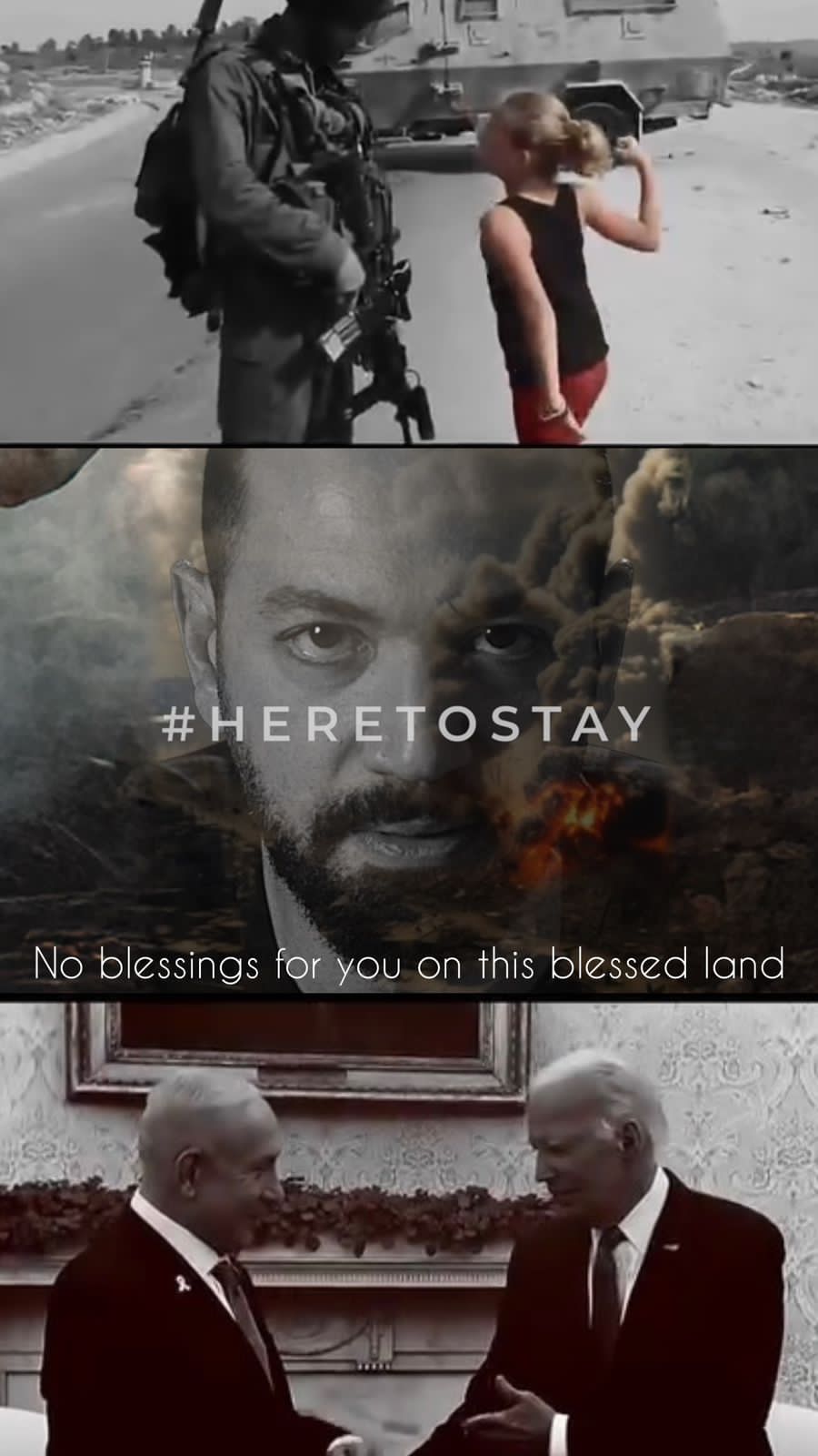 وترجمت أغنية سأبقى هنا لـ معز مسعود إلى العربية، خاصة أنها تحمل رسالة إلى المجتمع الدولي عامة ونتنياهو وإسرائيل خاصة، حيث يقول في كلماتها: لا يمكنك لعب دور الضحية إلى الأبد، وأنت عبد لأطماعك.