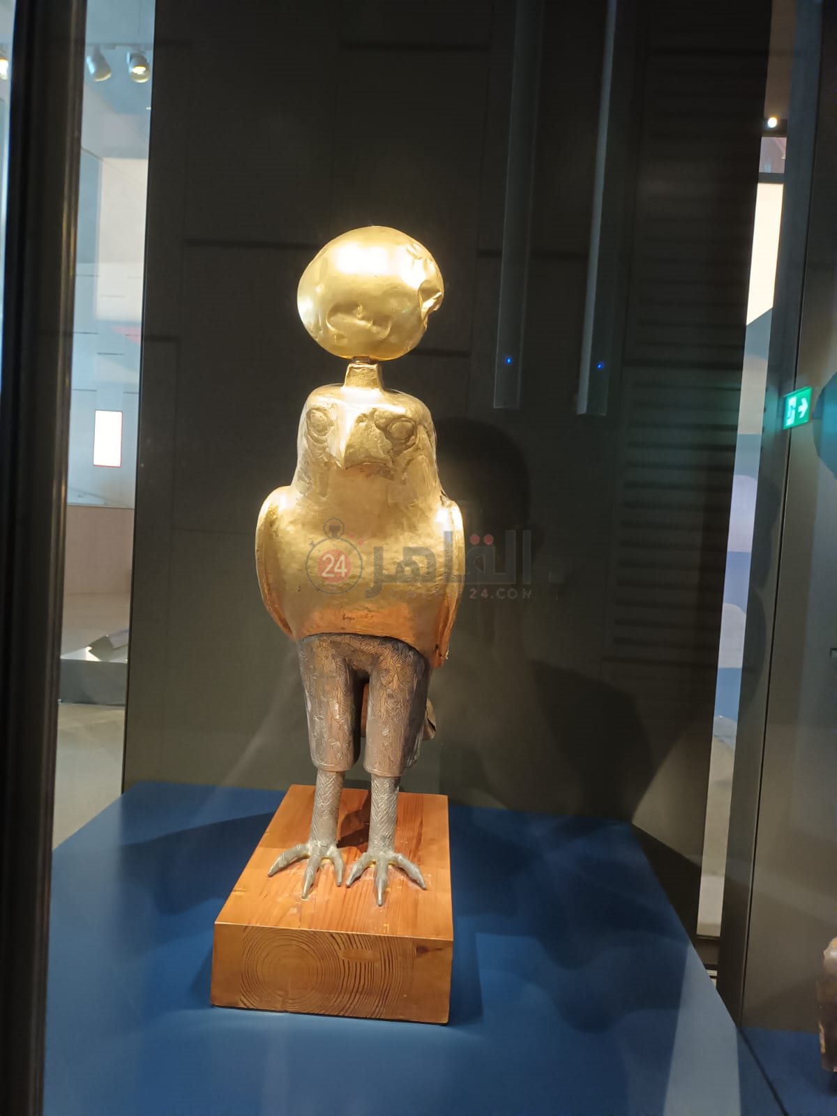بعد عرضه.. الصور الأولى لتمثال حورس الذهبي داخل قاعات المتحف المصري الكبير
