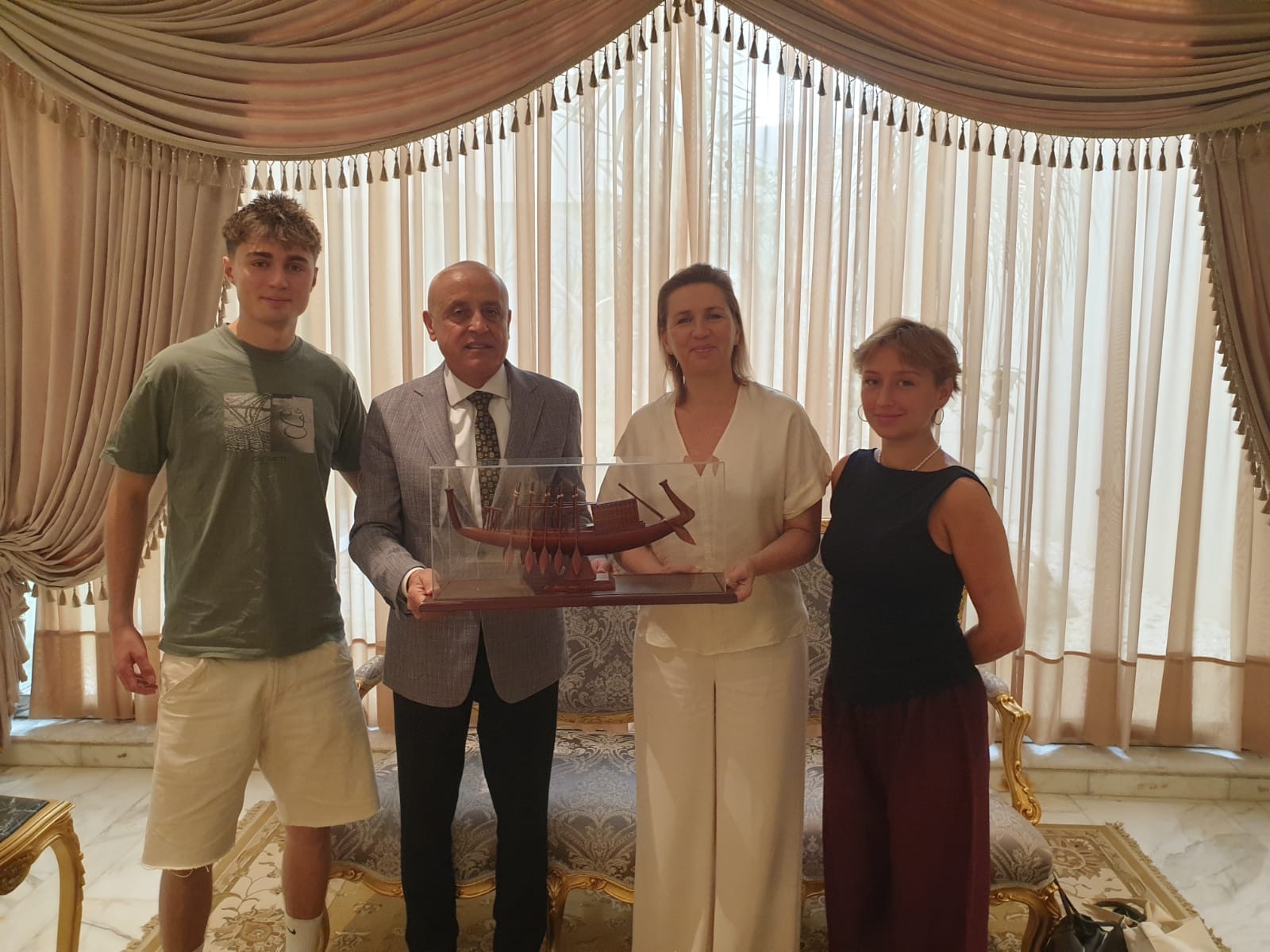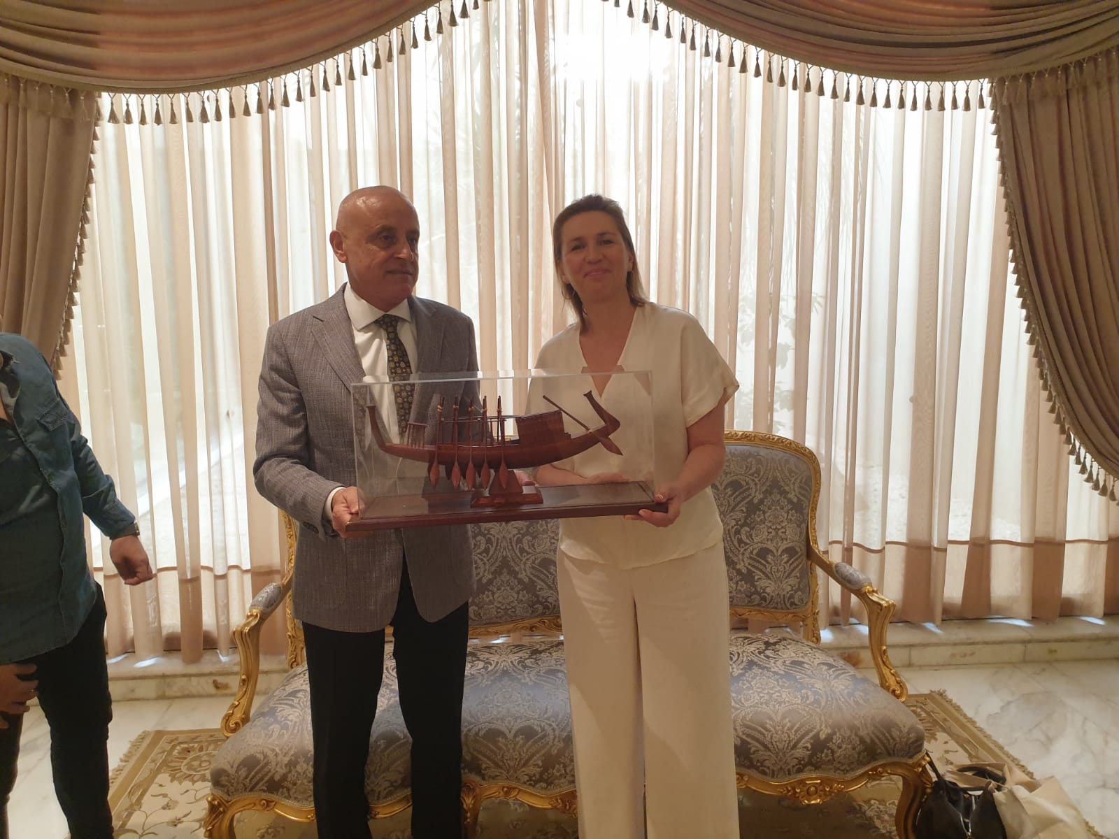 وقدم محافظ الأقصر لرئيسة وزراء الدنمارك هدية تذكارية عبارة عن نموذج مصغر مقلد لـ مركب الشمس.