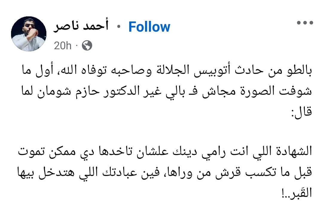 حساب يهاجم ضحايا حادث أتوبيس الجلالة
