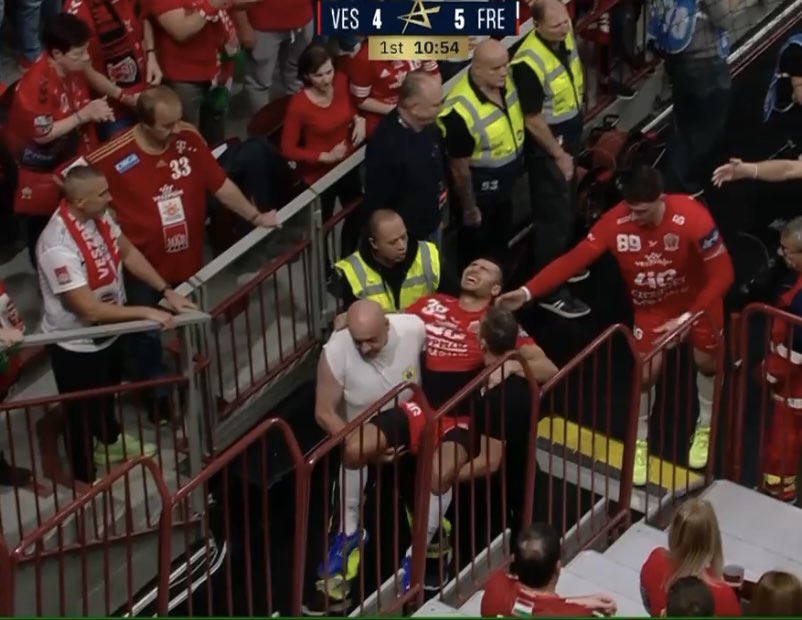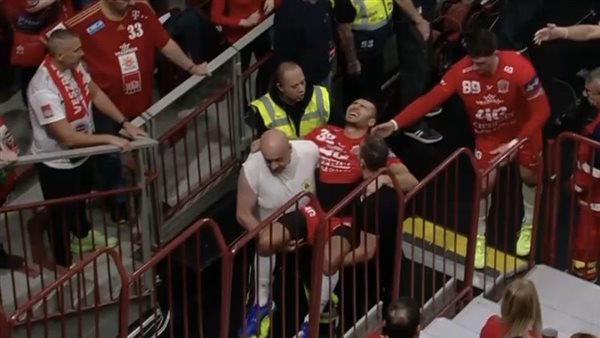 إصابة يحيى الدرع لاعب منتخب مصر لـ اليد في مباراة فريقه المجري