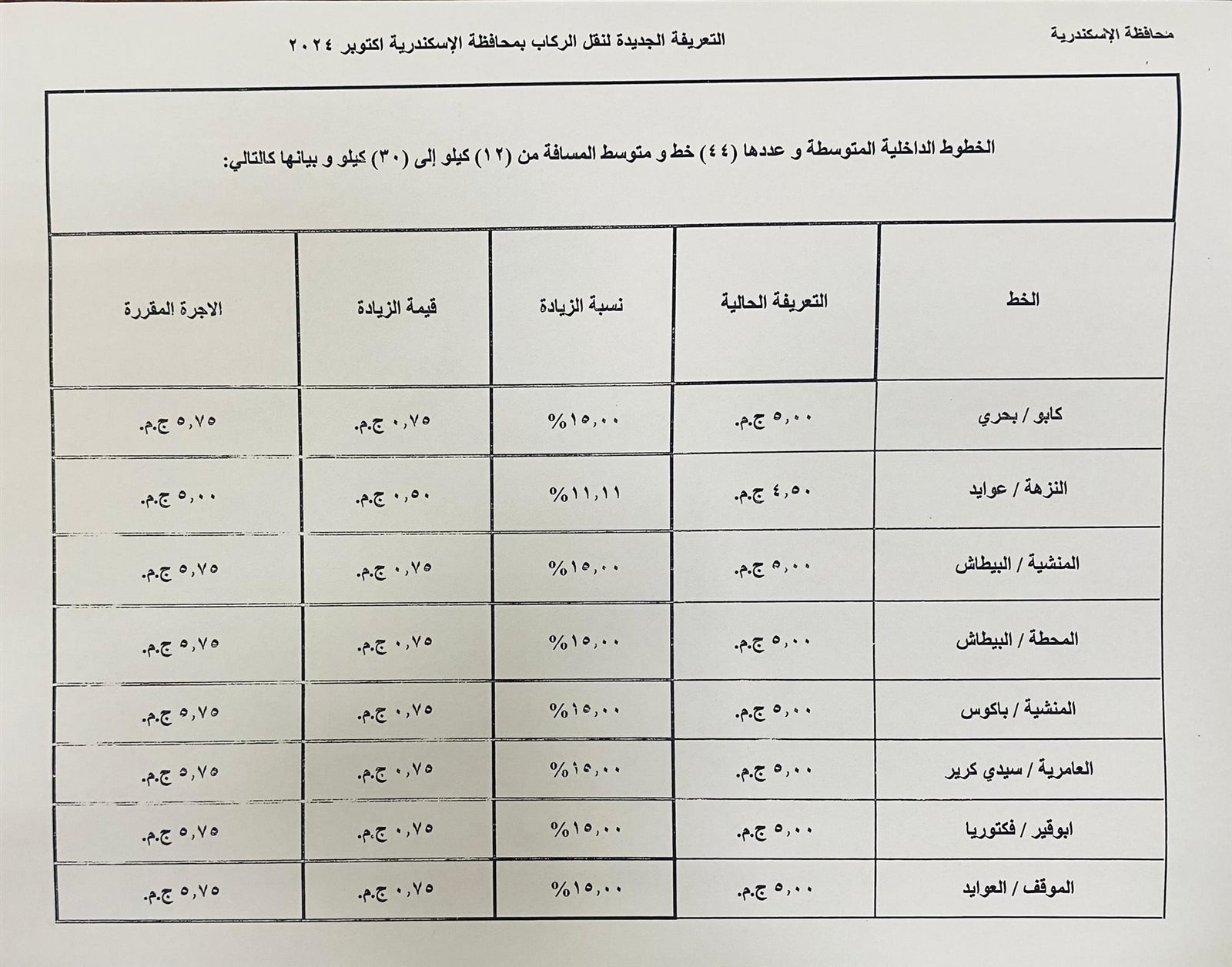 - تسعيرة المواصلات الجديدة الإسكندرية
