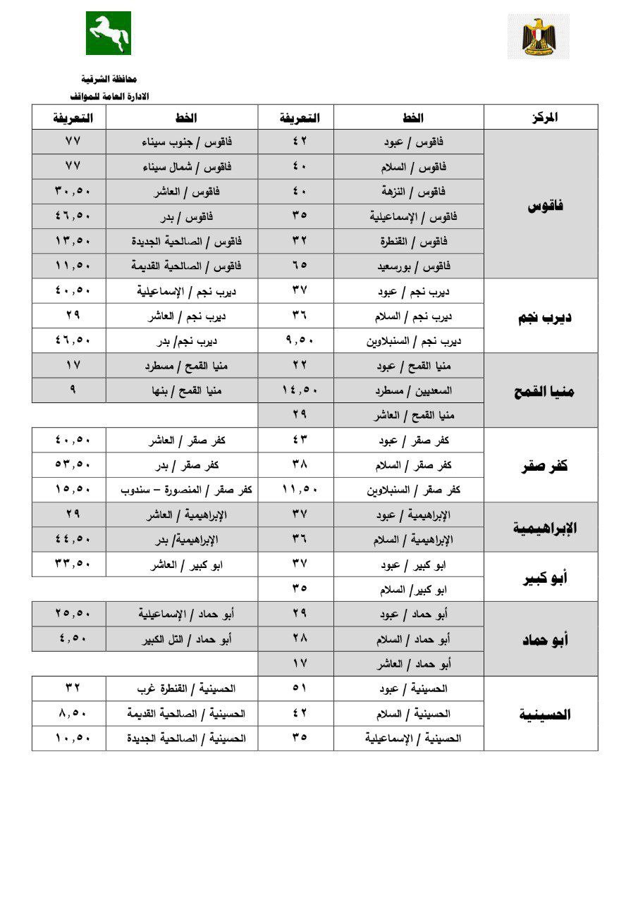 - أجرة المواصلات الجديدة في محافظة الشرقية