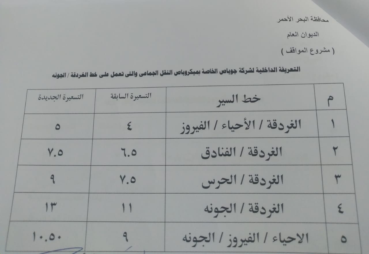 أسعار المواصلات الجديدة في محافظة البحر الأحمر