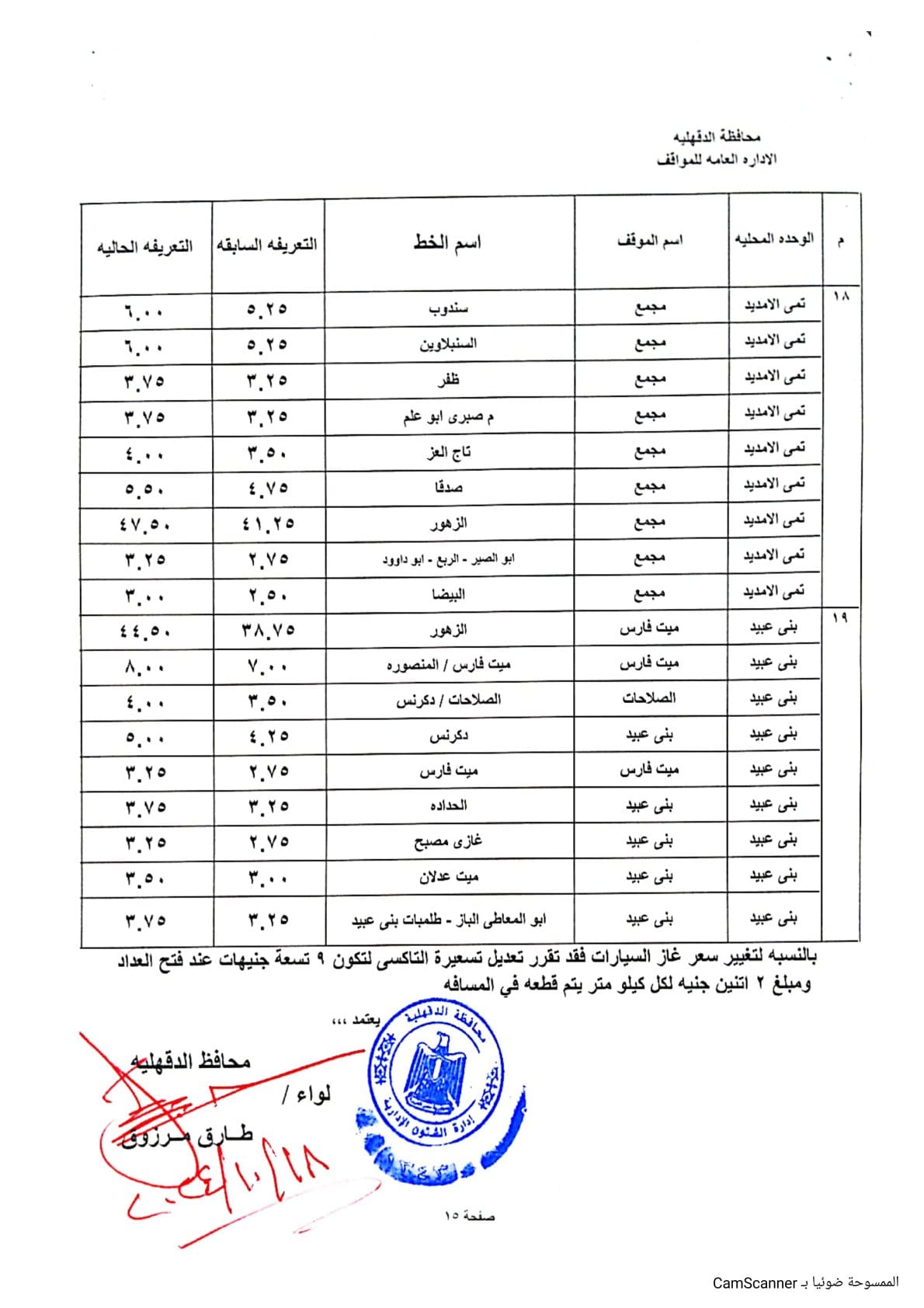 بناء على قرار لجنة التسعير يزيادة أسعار المنتجات البترولية بكافة أنواعها، اعتمد اللواء طارق مرزوق، محافظ الدقهلية تسعيرة المواصلات الجديدة في محافظة الدقهلية بزيادة تصل من 10-15% في جميع نطاق المحافظة، حيث جاءت قائمة الأسعار كالتالي