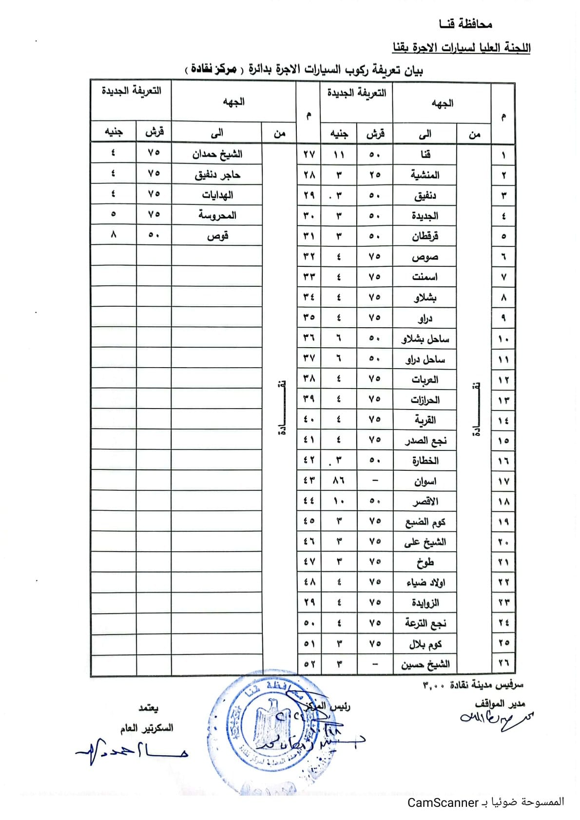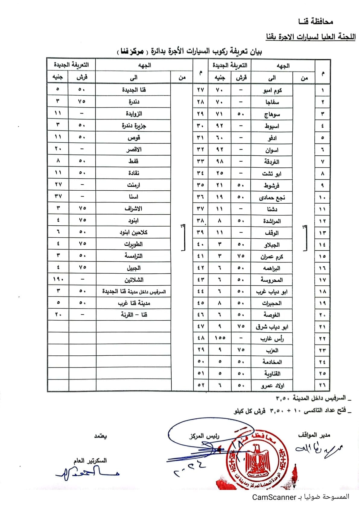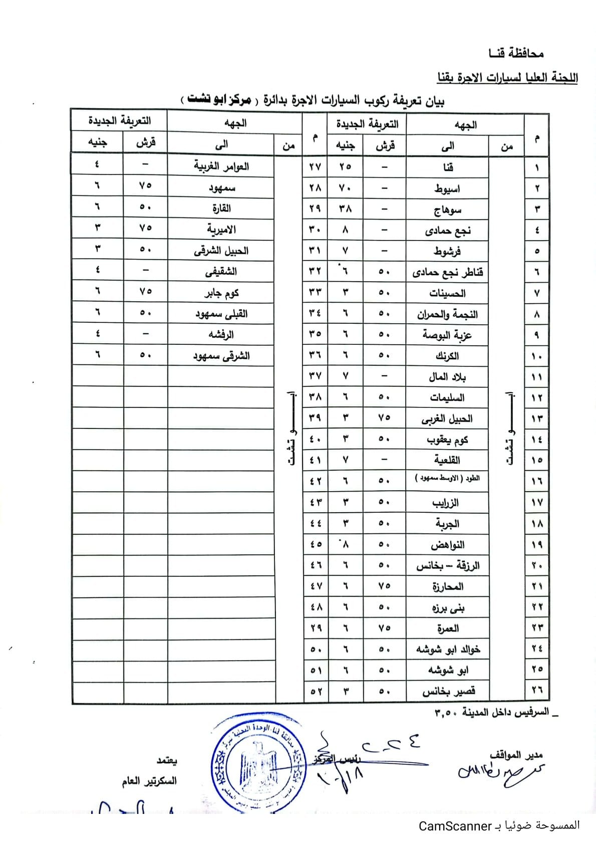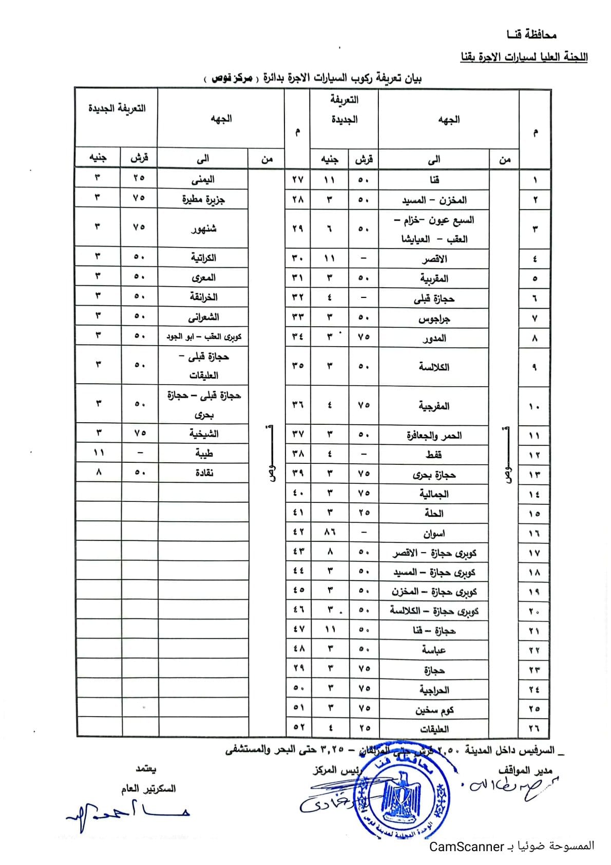 تعريفة ركوب المواصلات الجديدة في محافظة قنا