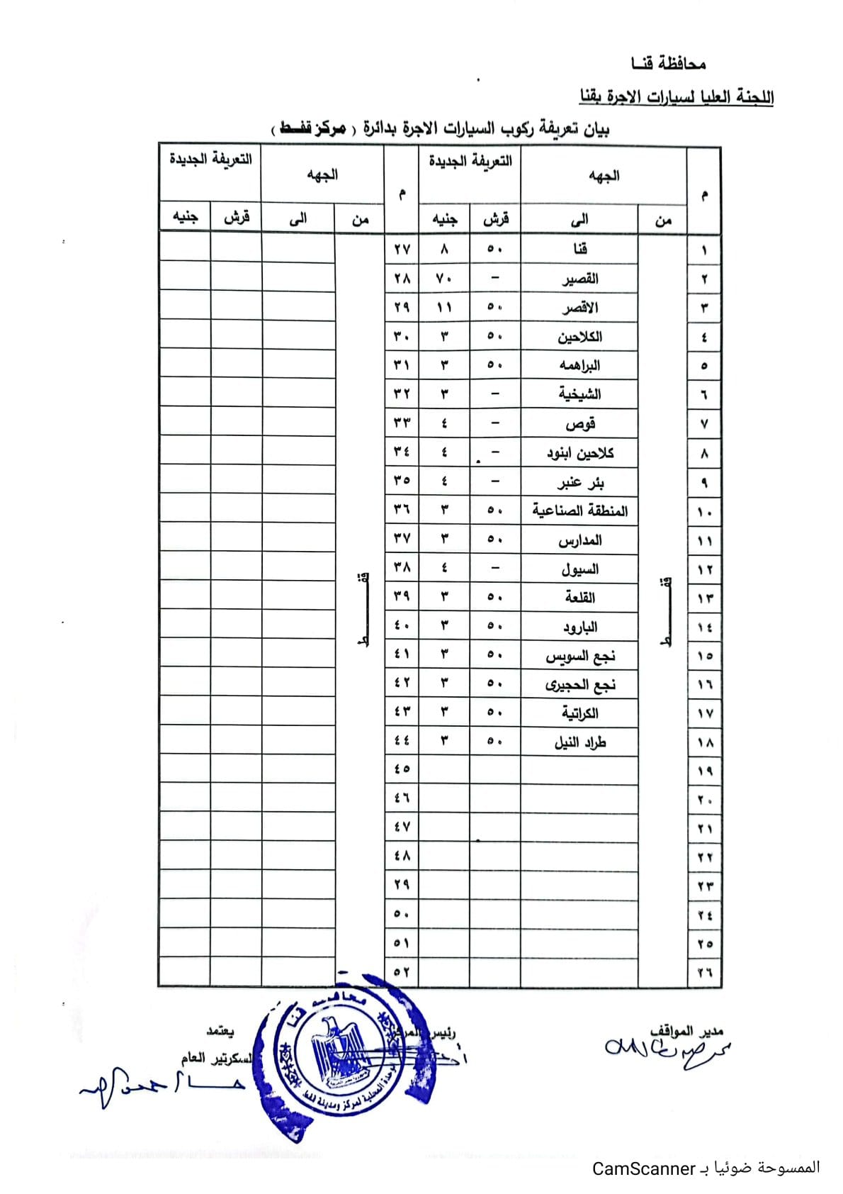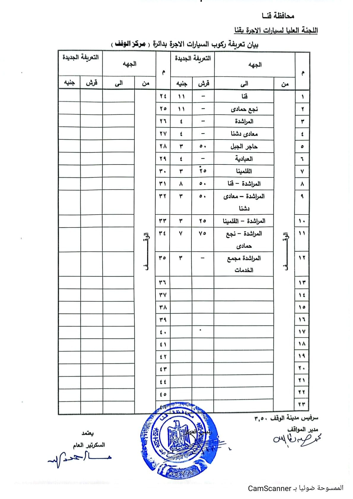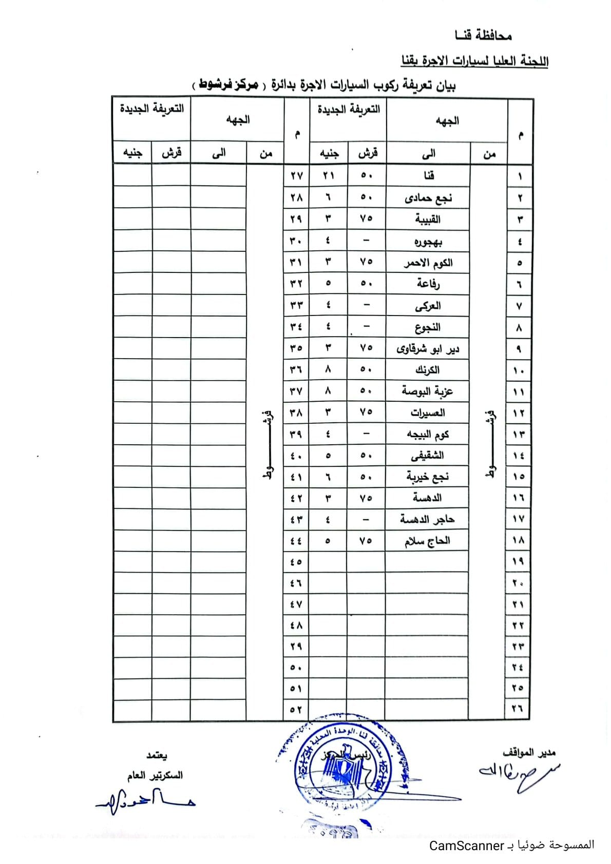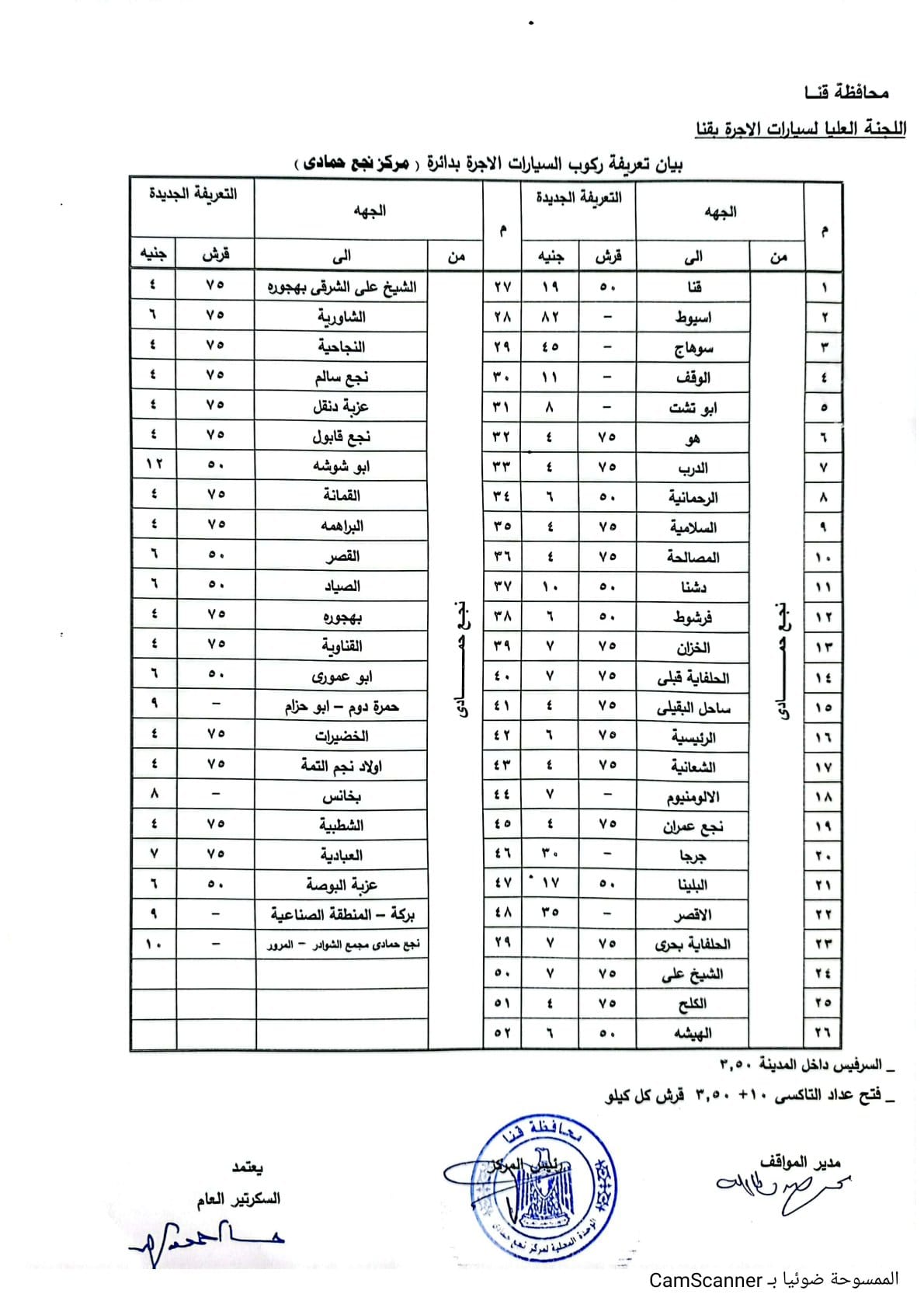 تعريفة ركوب المواصلات الجديدة في محافظة قنا