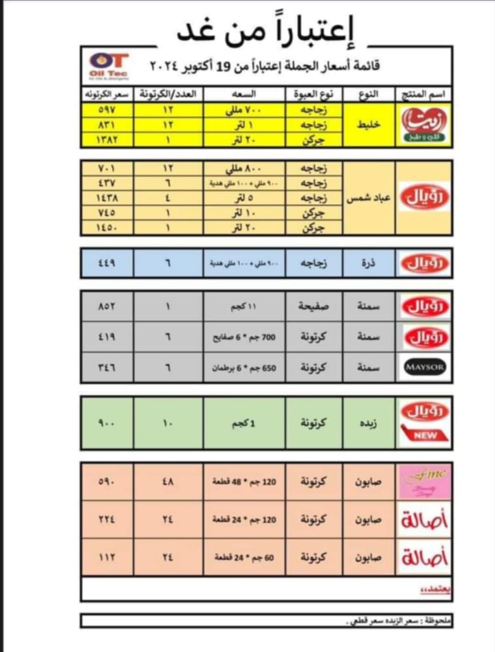 قررت شركة أويل تيك، رفع أسعار زيوت الخليط والعباد والذرة في المحلات التجارية بالأسواق المصرية، بقيمة تصل إلى 68 جنيها للكرتونة.