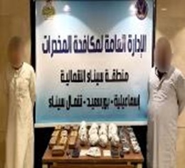 كما تم ضبط عنصرين إجراميين لهما معلومات جنائية بدائرة مركز شرطة أبو صوير، وبحوزتهما 18 كجم لمخدر الحشيش، و12 كجم لمخدر الهيدرو، و2 سيارة، وضبط عنصر إجرامي له معلومات جنائية بدائرة مركز شرطة الإسماعيلية، وبحوزته 15،5 كجم لمخدر الحشيش.
