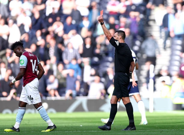 طرد محمد قدوس في مباراة توتنهام ووست هام بالدوري الإنجليزي