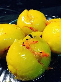 - اغسلي حبات الليمون ثم شقيها بالسكينة أربع أرباع دون فصل الأرباع عن بعضها.