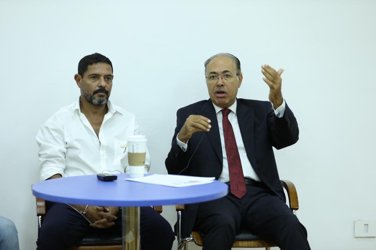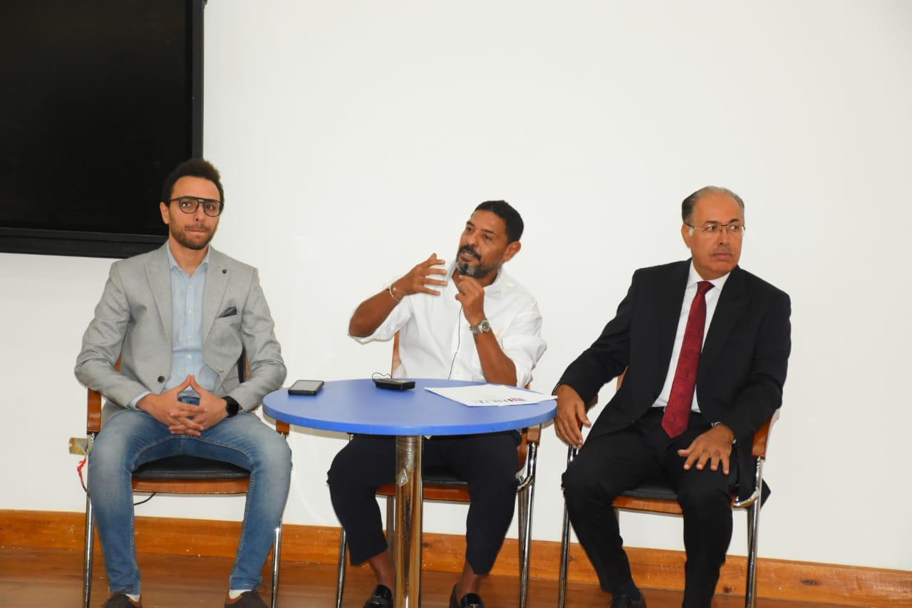 ودار نقاش مع الطلاب حضره أساتذة الكلية والجامعة حول الموسيقي وصناعتها وتأثيرها النفسي والتطورات التي طرأت عليها، وقال الدكتور محمد شومان عميد الكلية في بداية اللقاء أن الموسيقار هاني فرحات صنع نجومية كبيرة وقدم كل النوعيات الموسيقي، وقاد أكبر الأوركسترا في العالم ودائم التطور.