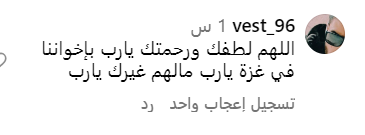 وتابع مُستخدم آخر: شعب جبار فخر الامة الاسلامية الله يحميكم ويحفظكم وينصركم على عدوكم، وعلق آخر: الرحمة يا الله لأهل غزة وأطفالها، وآخر: اللهم لطفك ورحمتك يا رب بإخواننا في غزة يا رب مالهم غيرك يا رب.