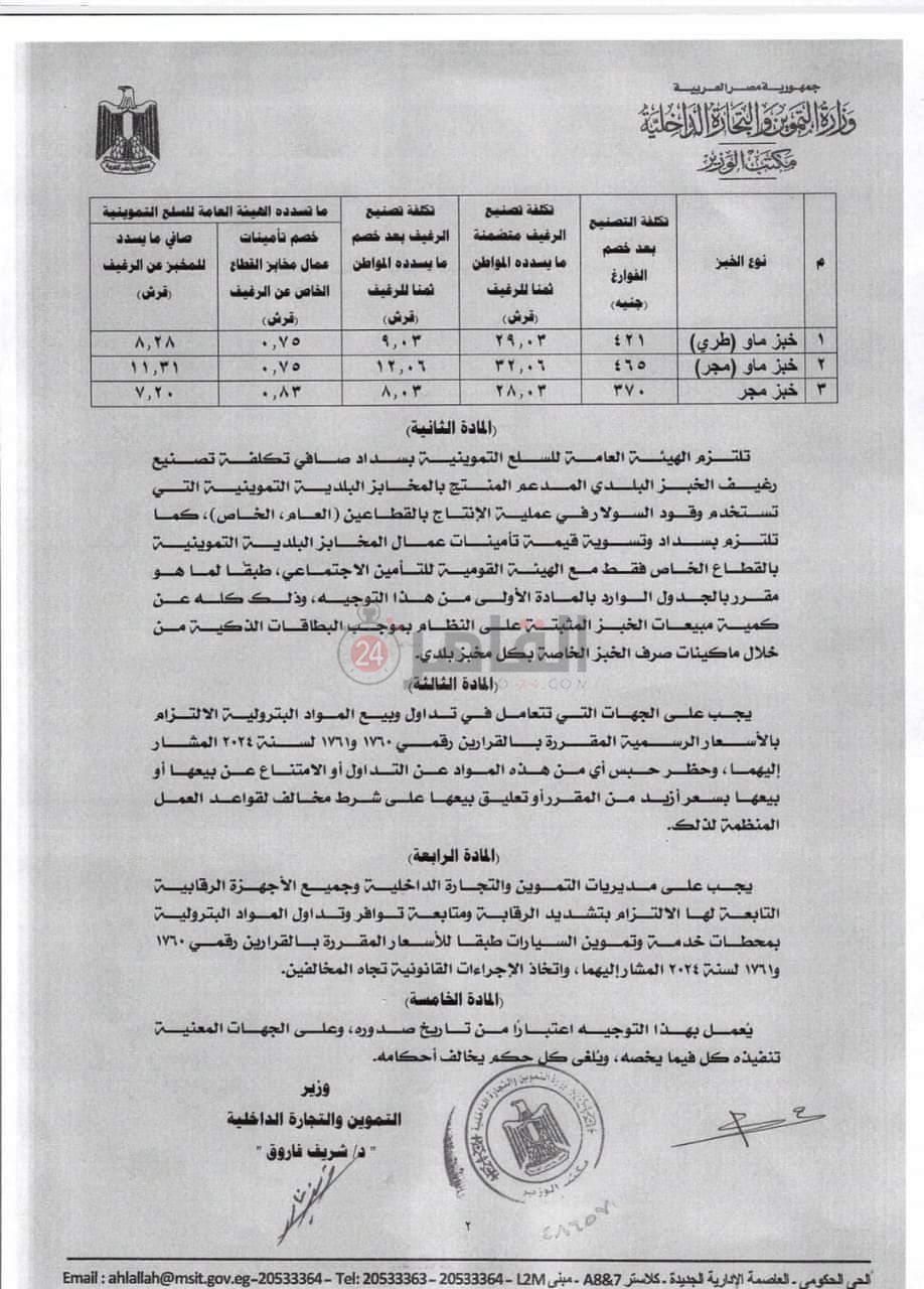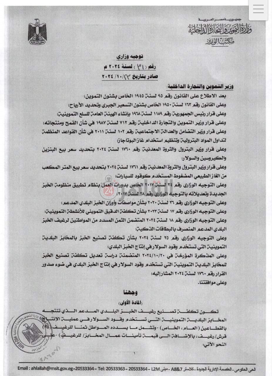 أصدر وزير التموين والتجارة الداخلية توجيهًا وزاريًا جديدًا بالتعاون مع وزير البترول والثروة المعدنية، يتضمن تنظيم أسعار المواد البترولية وتحديد تكلفة إنتاج الخبز البلدي المدعم بالمخابز البلدية، خاصة تلك التي تعتمد على السولار في عمليات الإنتاج، حيث يأتي هذا القرار في إطار ضبط الأسعار وتنظيم عملية التصنيع لضمان استمرار توفير الخبز للمواطنين بأسعار مناسبة عبر البطاقات التموينية الذكية.
