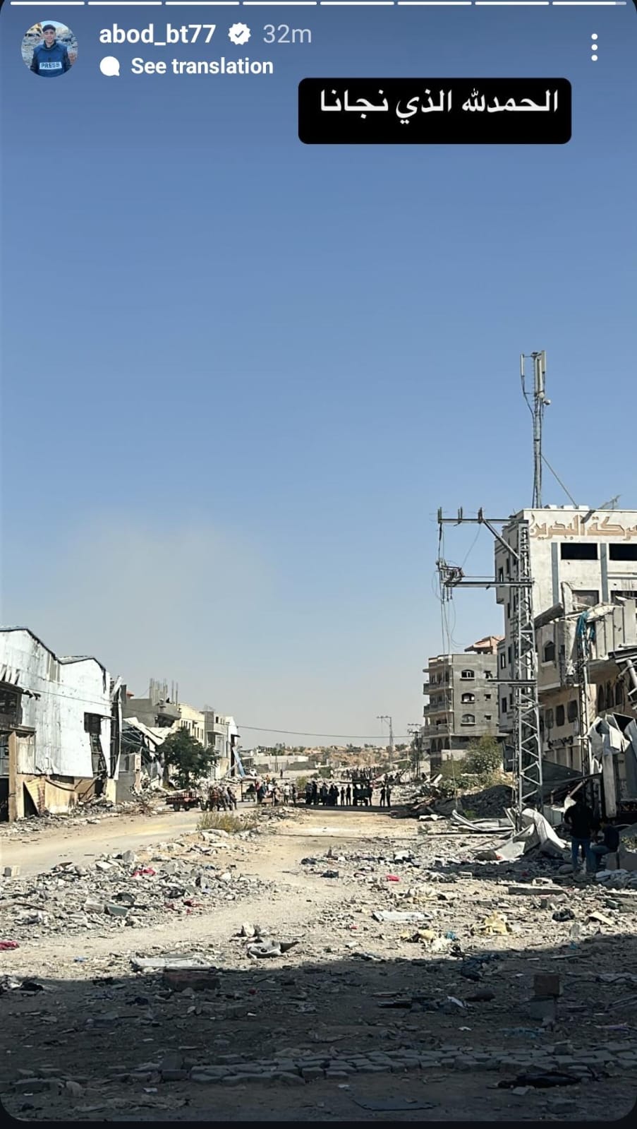 وكتب الشاب الفلسطيني عبود بطاح: الحمد لله الذي نجانا.