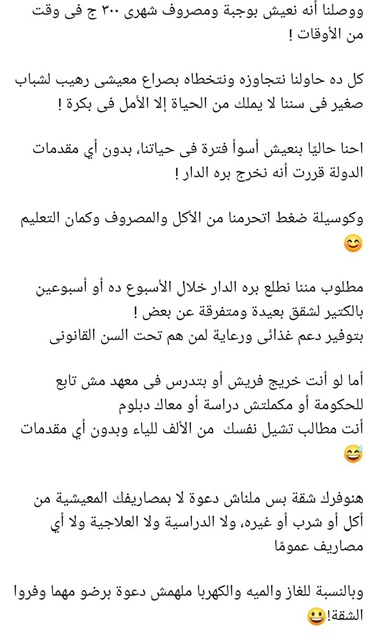 وأضاف وكيل وزارة التضامن: طبقا للائحة دور الأيتام أنه بعدما يتجاوز الشاب أو الفتاة سن الـ21 عاما وأنهى مراحله التعليمية، فتوفر الدولة وحدات سكنية مستقلة بهم، أما من لم يكمل التعليم فيكونوا 4 أو 6 في وحدات سكنية مع طاقم مشرفين ويتم توفير الأكل والشرب ومصاريف الدراسة، وحتى السكن الجامعي لهم من قبل الدولة، حتى إنهاء التعليم وبعدها يحصل على شقة منفصلة.