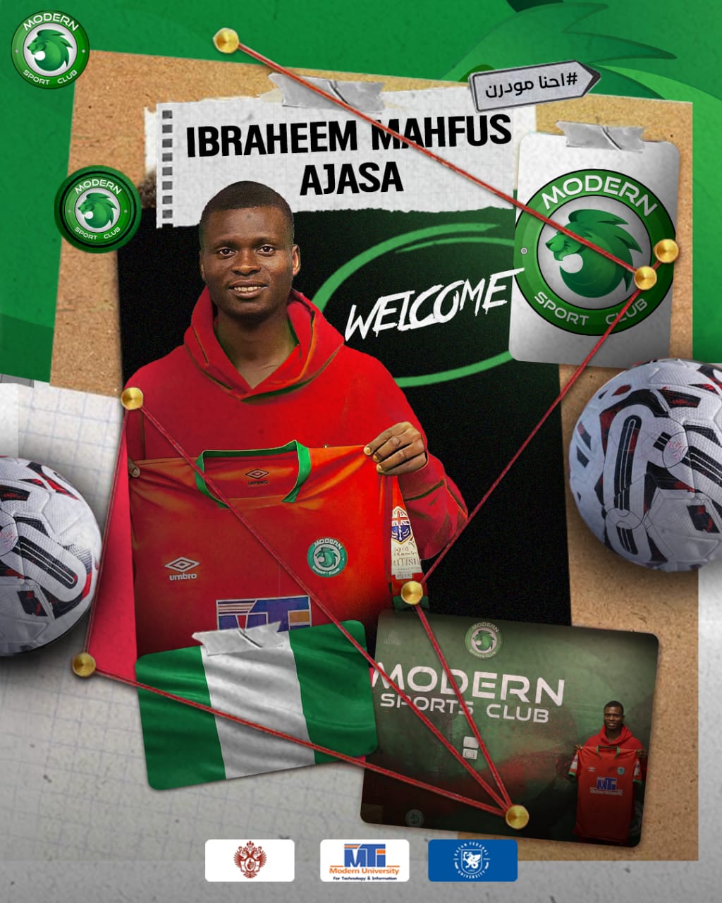 أتم مجلس إدارة نادي مودرن سبورت برئاسة الدكتور وليد دعبس، إجراءات التعاقد مع اللاعب النيجيري إبراهيم محفوظ أجاسا، وذلك ضمن خطة النادي في التطوير ودعم الفريق الأول بعناصر مميزة من أجل المنافسة على البطولات خلال الموسم الكروي الجديد.