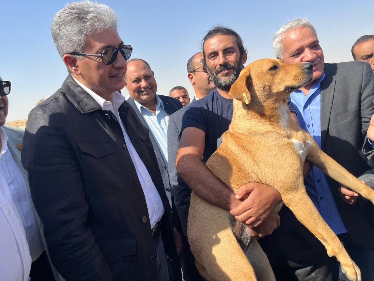 بعد صعوده الهرم الأكبر.. وزير السياحة يداعب الكلب بوكا خلال زيارته لأهرامات الجيزة| صور