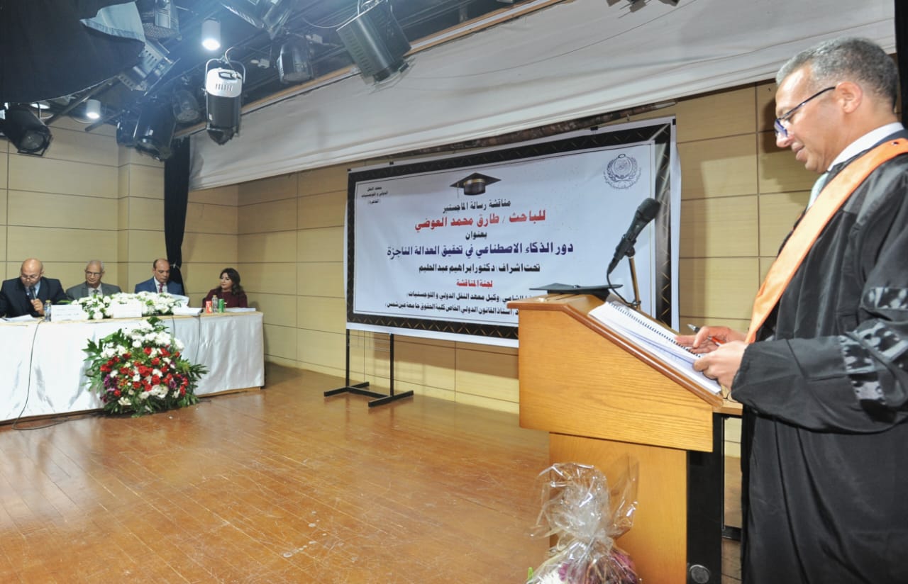 طارق العوضي يحصل على الماجستير حول دور الذكاء الاصطناعي في تحقيق العدالة الناجزة وسط حضور قانوني بارز