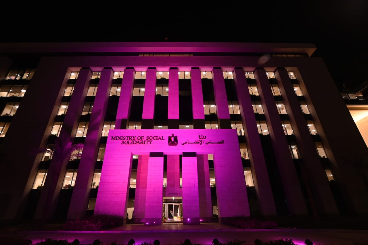 أضاءت وزارة التضامن الاجتماعي، مبنى الوزارة بالعاصمة الإدارية باللون الوردي، وذلك في إطار التوعية بأهمية الكشف المبكر عن سرطان الثدي، حيث إن شهر أكتوبر هو شهر التوعية عالميًا بسرطان الثدي.