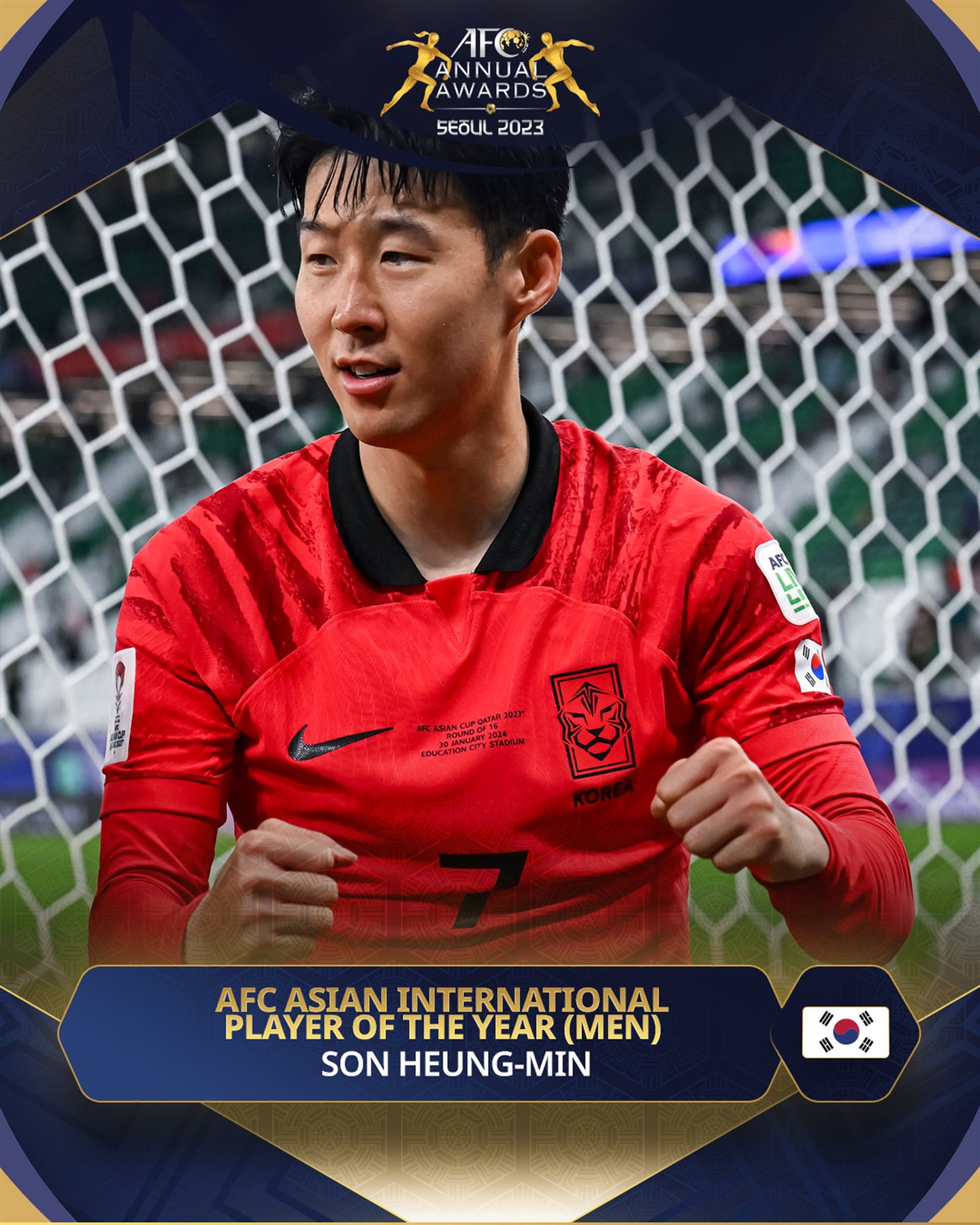 ونال اللاعب سون هيونج مين جائزة أفضل لاعب آسيوي خارج القارة 2023، بعد التألق رفقة فريقه الإنجليزي في الموسم الأخير، في ظل منافسة كل من: