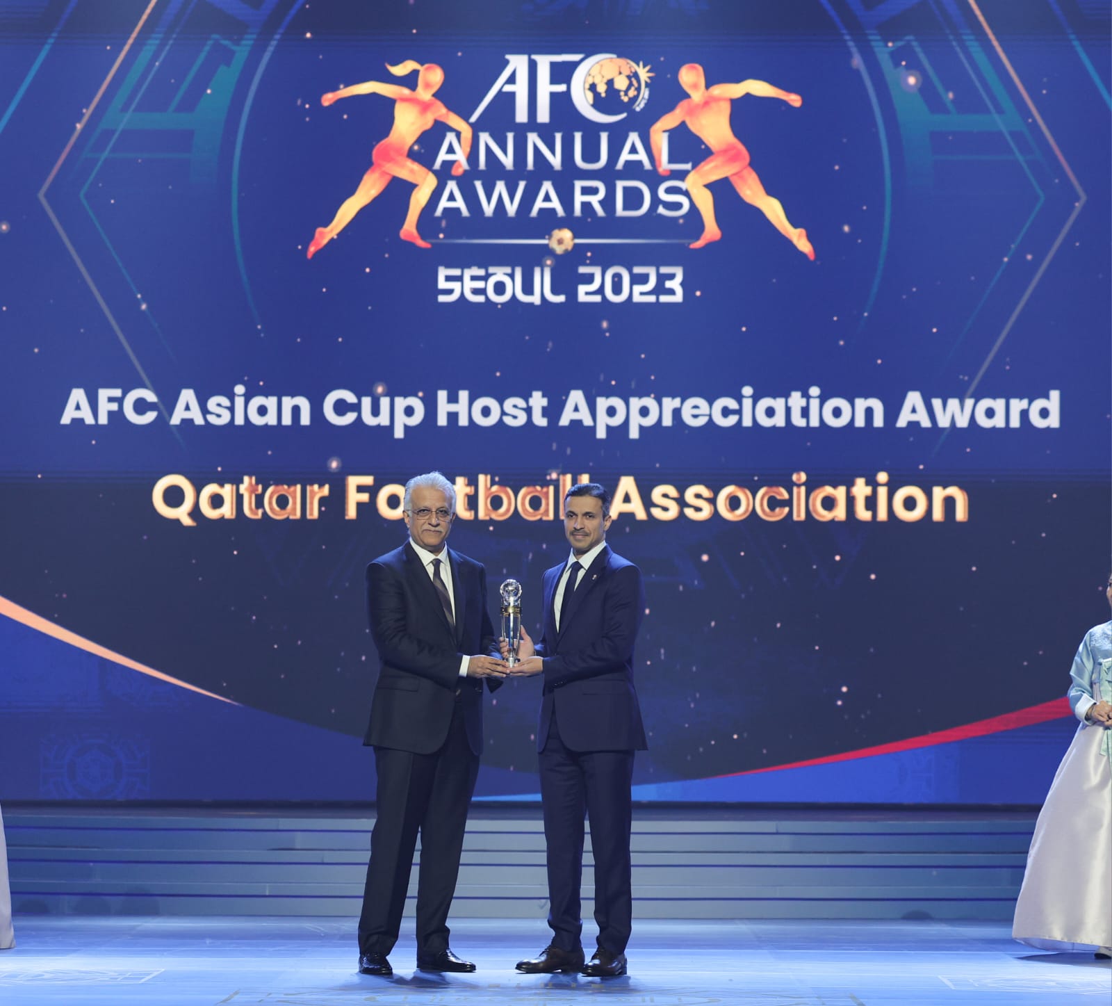 وقدم سلمان بن إبراهيم آل خليفة جائزة تقدير خاصة للاتحاد القطري لكرة القدم تسلمها رئيس الاتحاد جاسم البوعينين تقديرا لنجاح دولة قطر في استضافة نهائيات كأس آسيا 2023.