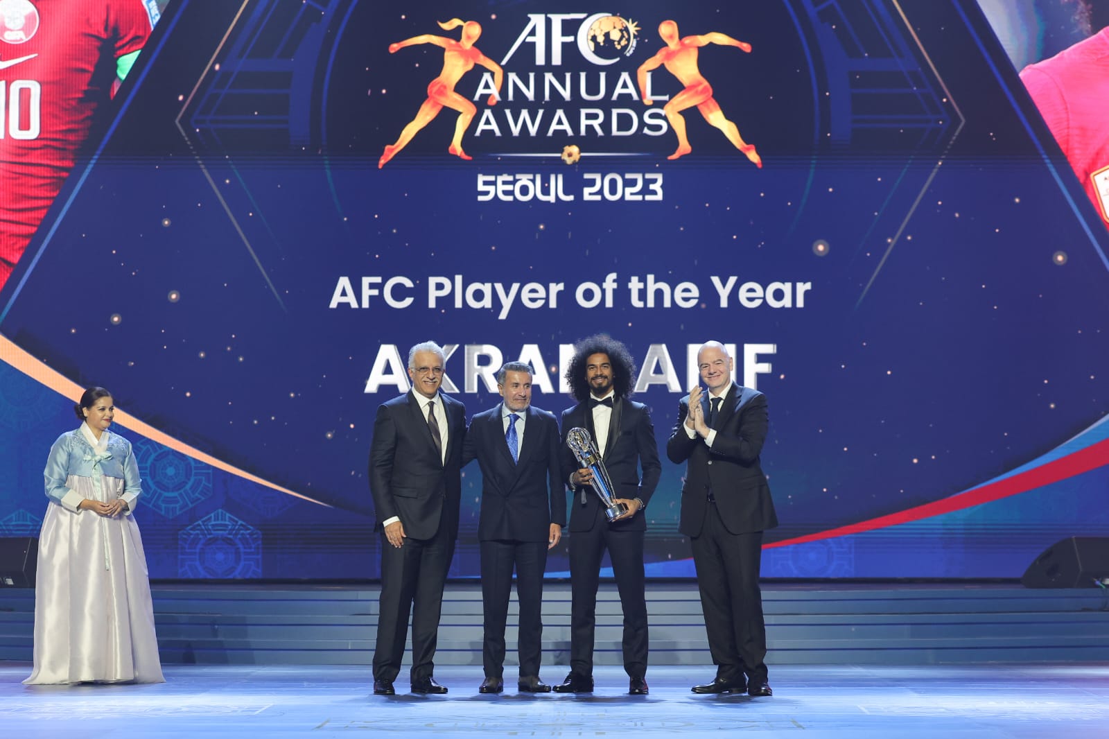 شهد سلمان بن إبراهيم آل خليفة رئيس الاتحاد الآسيوي لكرة القدم النائب الأول لرئيس الاتحاد الدولي لكرة القدم مساء اليوم الثلاثاء، حفل الجوائز السنوي للاتحاد الآسيوي لكرة القدم 2023 الذي أقيم بقصر السلام الكبير بجامعة (كيونغ هي) في العاصمة الكورية سيؤول، بحضور السيد جياني إنفانتينو رئيس الاتحاد الدولي لكرة القدم، والأمير عبد العزيز بن تركي الفيصل وزير الرياضة السعودي رئيس مؤسسة الحلم الآسيوي وكبار الشخصيات الكروية في القارة الآسيوية.