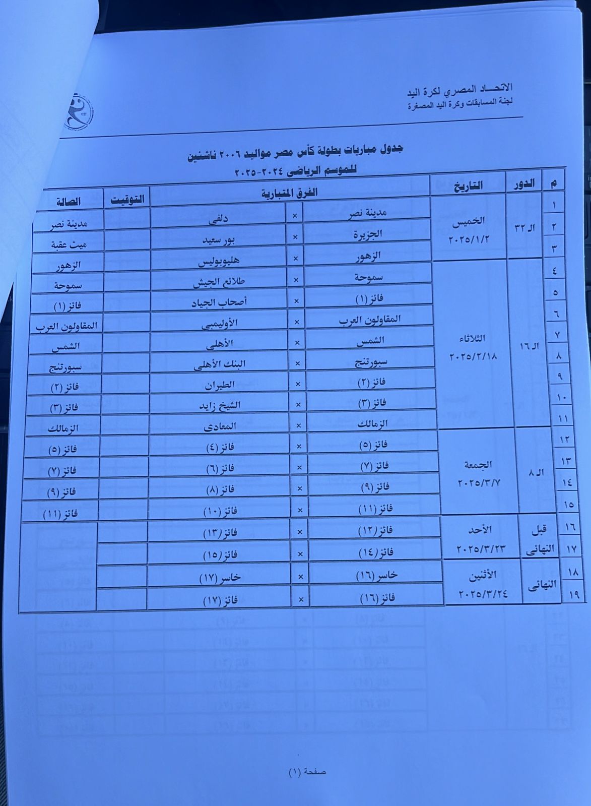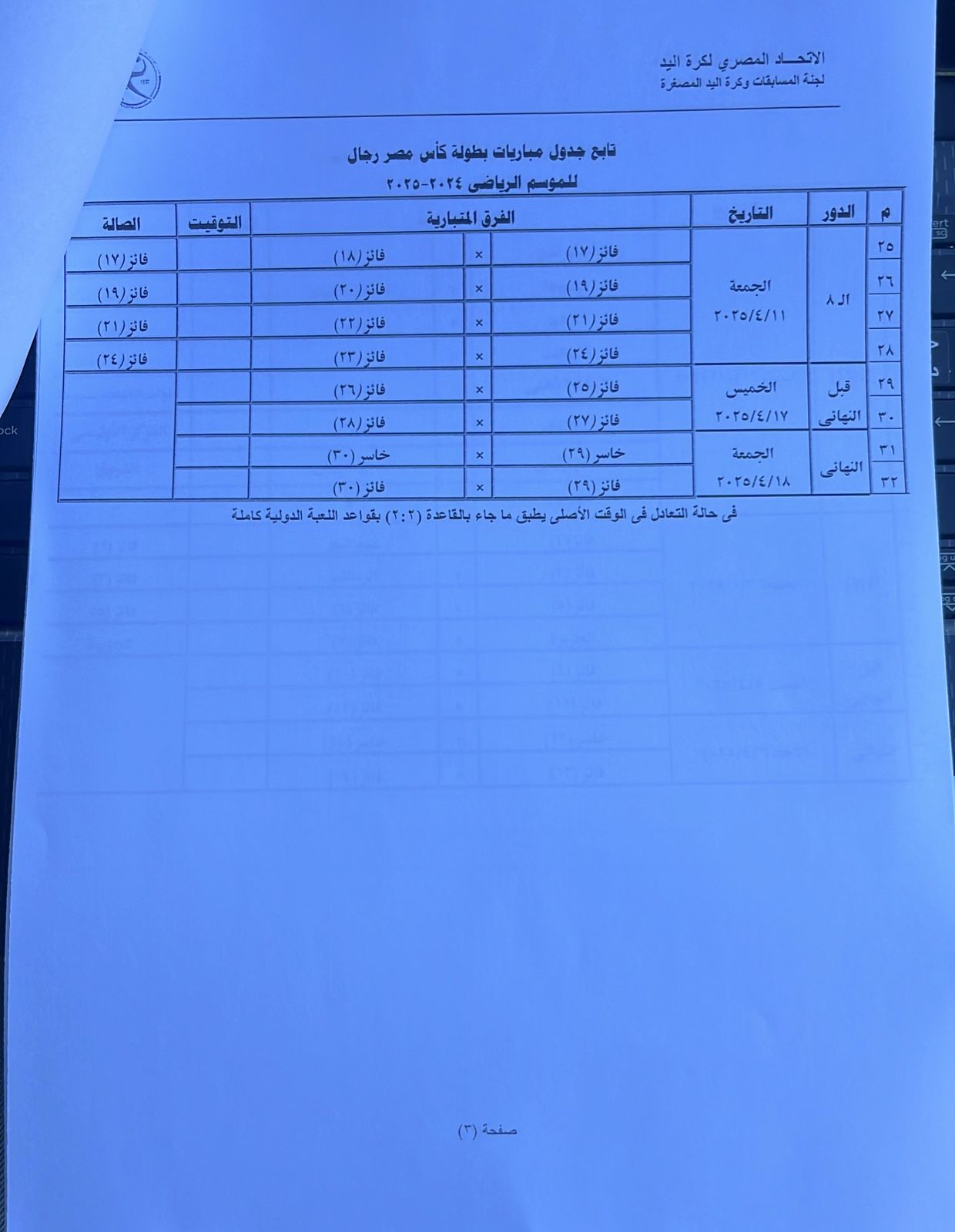 أجريت قرعة كأس مصر لكرة اليد للمراحل رجال و2004 و2006 و2008 و2010 شباب وناشئين، كذلك تم اجراء قرعة السيدات و2006 و2008 و2010 شابات وناشئات.