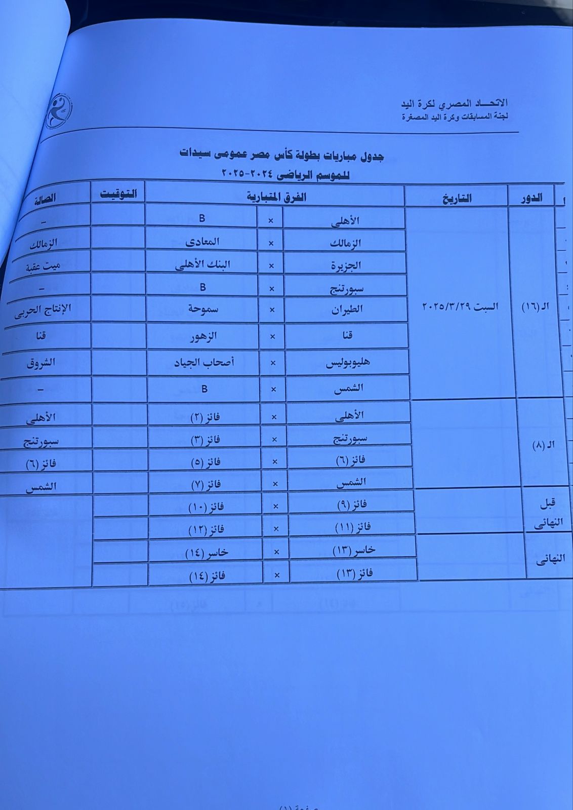 فيما جنبت القرعة أندية الأهلي وسبورتنج والشمس من مواجهات دور الـ 16 والتأهل إلى دور الـ8 التي لم تحدد موعد مبارياتهم حتى الآن.