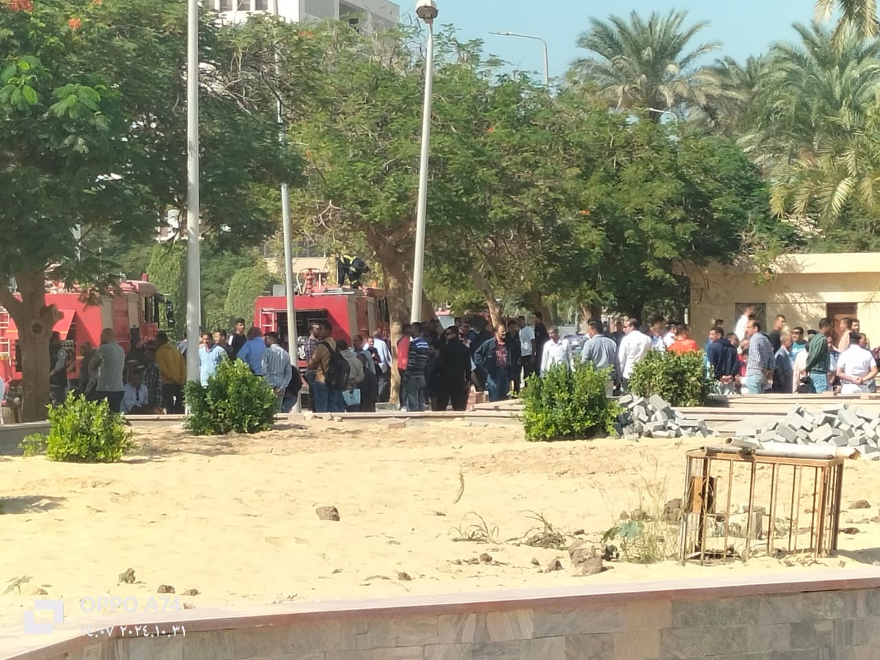 حريق في صالة ملعب كرة السلة بكلية تربية رياضية جامعة المنيا