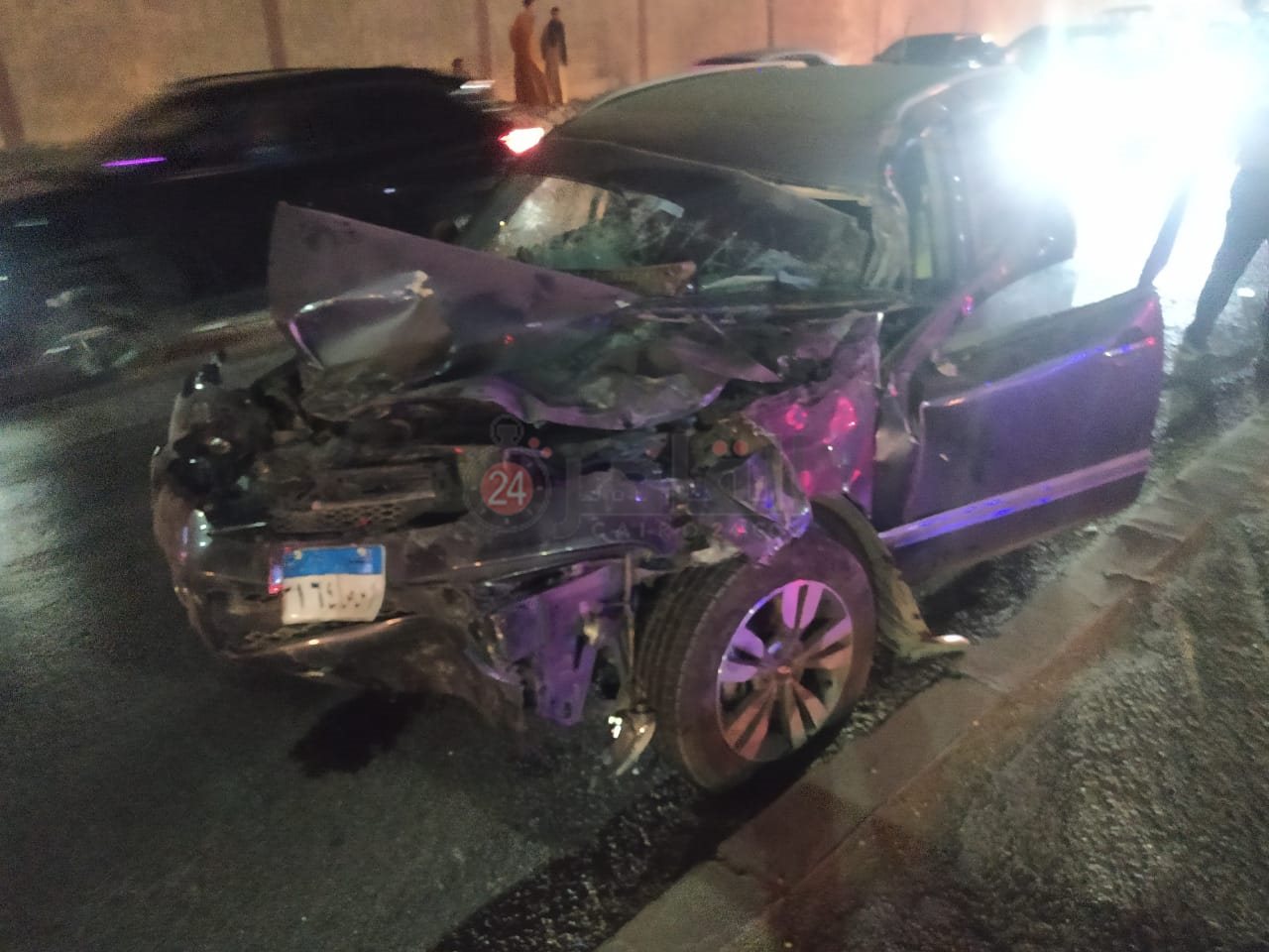 مصرع شخص وإصابة 4 آخرين في حادث تصادم سيارتين على طريق الأوتوستراد | صور